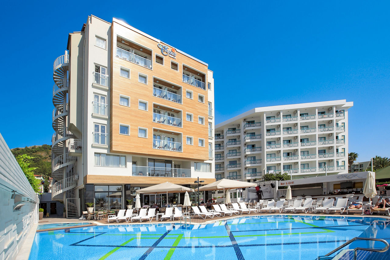 Offering a fantastic beachfront location close to the buzzing resort of Marmaris, Cettia Beach Resort is an adults only escape ideal for couples and friends! Soak up the Turkish sunshine whilst relaxing in the charming pool area or on the hotel?s private pier over the Turquoise Aegean Sea. Inside the hotel, rooms are modern and well-appointed and the restaurant serves up Turkish delights for all. With a welcoming atmosphere and friendly service, Cettia Beach Resort is the perfect holiday hot spot.