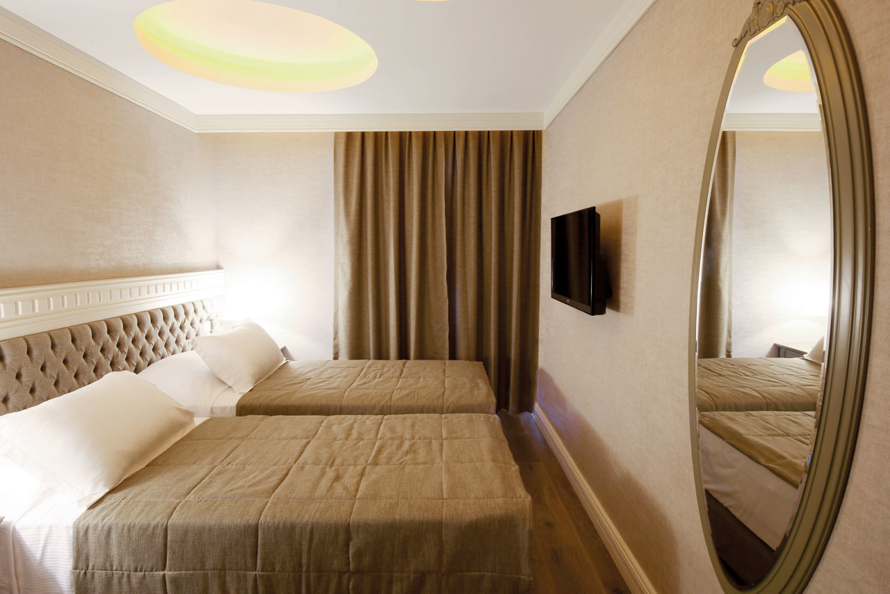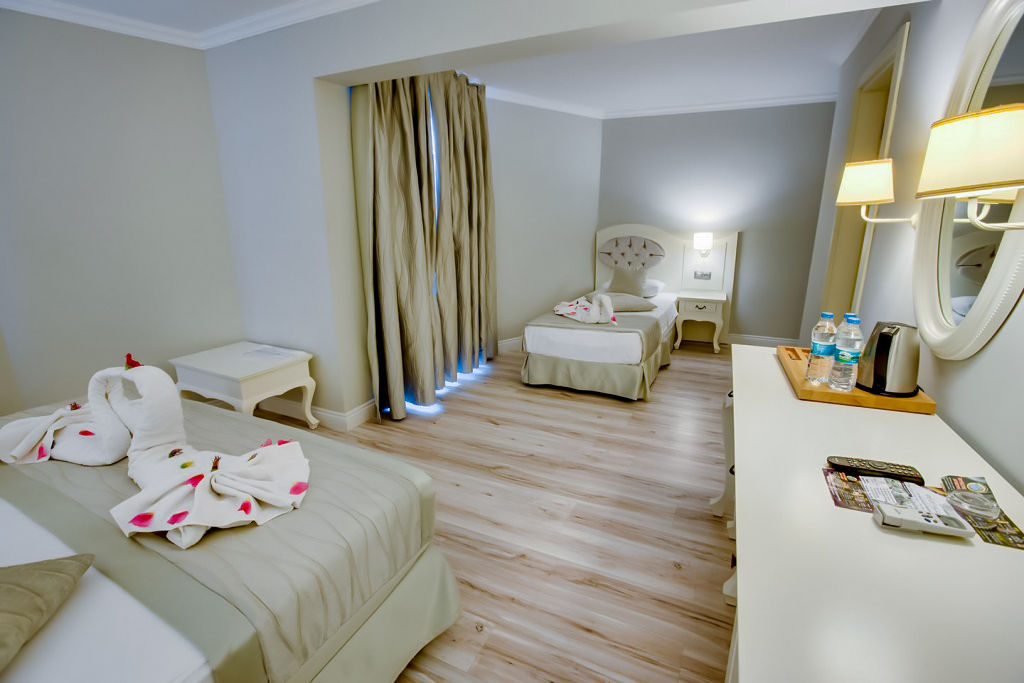 Standard Double or Twin rooms sleep up to 2 adults and have bathroom, air conditioning, hairdryer, flat screen television, safety deposit box*, coffee making facilities and balcony or terrace. Deluxe Double rooms, Deluxe Studios, Suites with Outdoor Whirlpool, Two Bedroom suites and Swim Up Two Bedroom suites are also available.