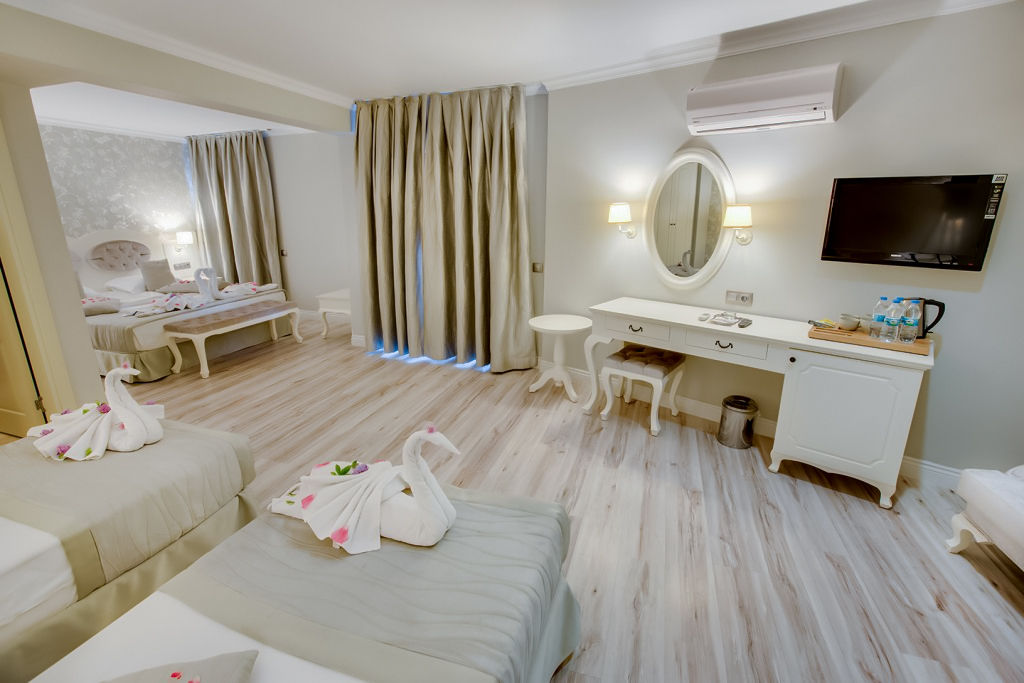 Located just a short distance from the lively and popular resort centre of Hisaronu, The Pine Hill HotelStandard Double or Twin rooms sleep up to 2 adults and have bathroom, air conditioning, hairdryer, flat screen television, safety deposit box*, coffee making facilities and balcony or terrace. Deluxe Double rooms, Deluxe Studios, Suites with Outdoor Whirlpool, Two Bedroom suites and Swim Up Two Bedroom suites are also available.