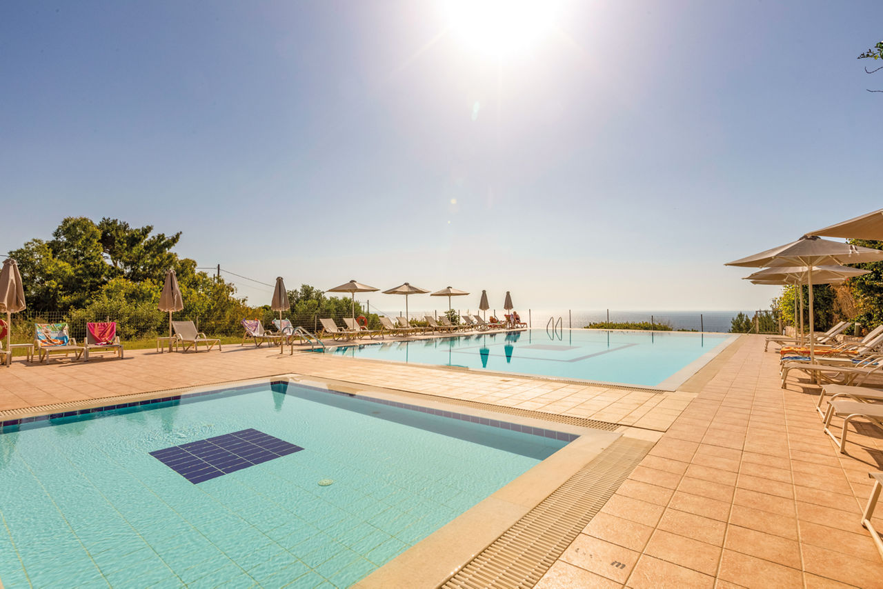 Zephyros Hotel can be found in an elevated position in the popular resort of Skala. This peaceful retreat is only a short walk from the main beach road, which leads to a choice of shops, bars and restaurants. There are spectacular sea views as well as those of the surrounding areas on show whilst you sit by the pool, which will leave you feeling relaxed in no time. With excellent service and well-equipped rooms, you can enjoy a laid-back holiday here.Double and Twin rooms sleep up to 2 adults and have bathroom containing a bath with shower attachment, air conditioning, hairdryer, fridge and balcony or terrace. Double and Twin room with Side Sea View and Double and Twin rooms with Sea View are also available.