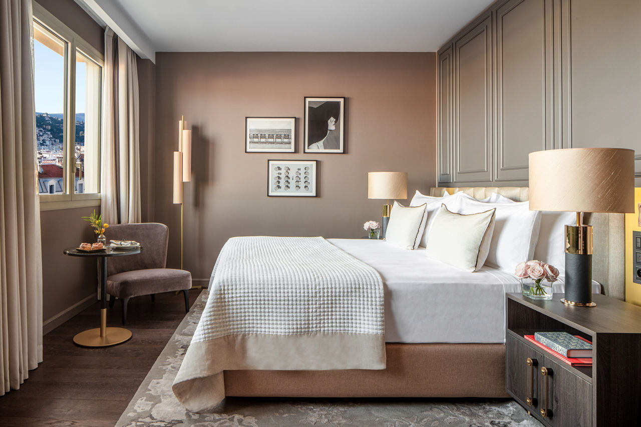 Nestled within a historic structure featuring a Belle Epoque facade, the Anantara Plaza Nice is ideally situated adjacent to the old city. Positioned for convenient access to both Place Massena and the renowned Promenade des Anglais, this upscale hotel offers an ideal starting point for exploring Nice. Guests can unwind at the Anantara Spa during the day, and in the evening, the exquisite rooftop restaurant and bar boast 360° panoramic views of the sea and the historic city, offering a delightful conclusion to your night. As a proud member of The Leading Hotels of the World, the hotel ensures a complete holiday experience with its luxurious furnishings, top-notch services, and outstanding facilities.