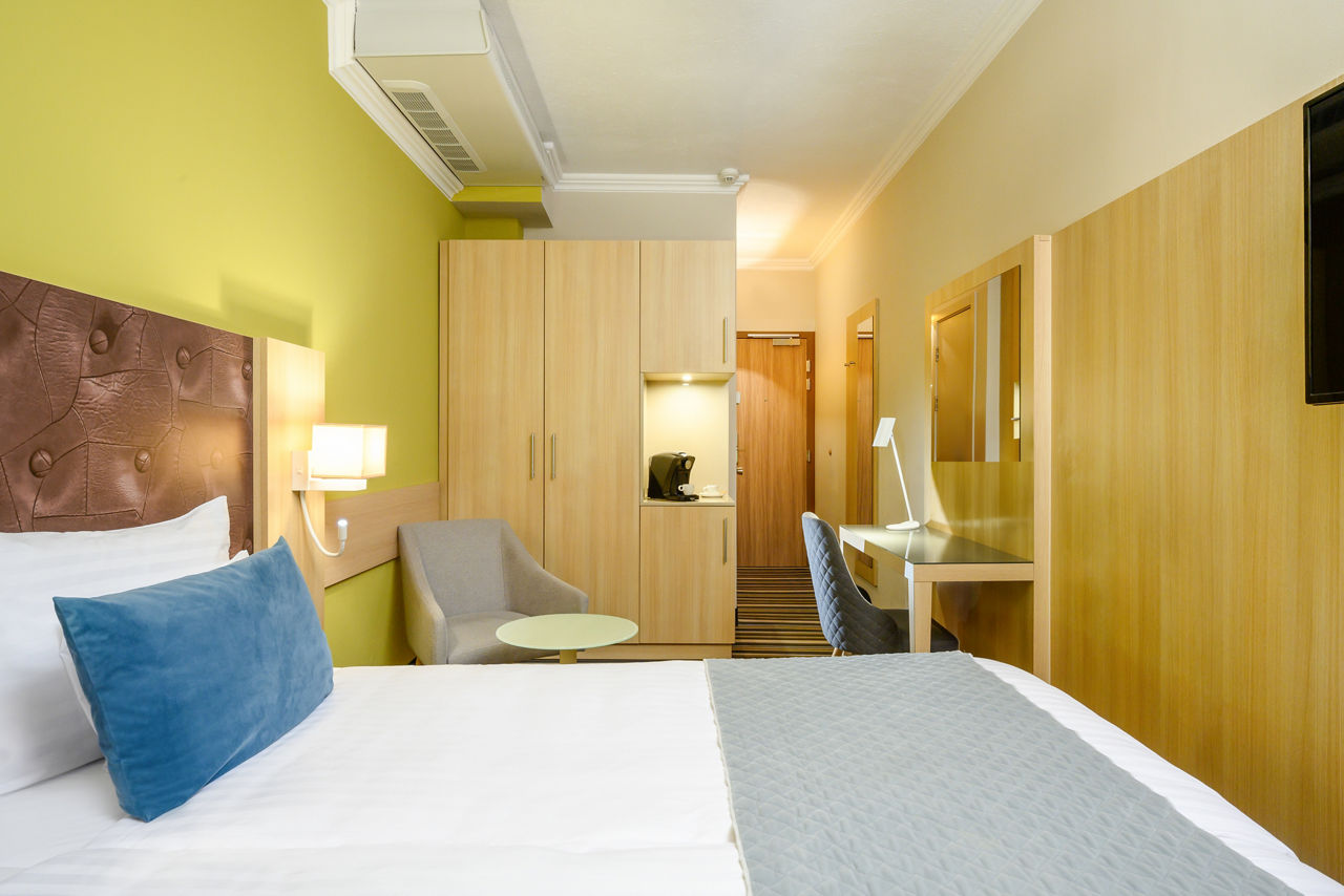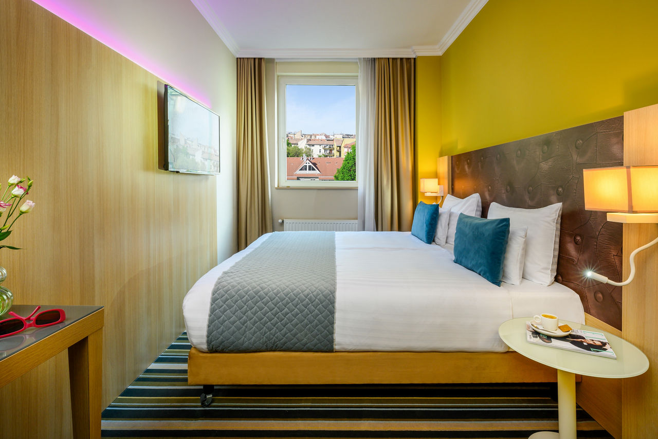 Located in the quieter financial district this modern hotel is a great base for exploring the delights of this historical city. Look forward to a delicious foodie trip in this capital with the Great Market Hall close by and many international cuisines on offer in delightful city centre restaurants. Or the hotel bistro showcases traditional Hungarian and Mediterranean flavours if you chose to eat in! Modern rooms with coffee making as standard allow you to rest up and plan your next day?s adventure in comfort.Comfort Double or Twin rooms sleep up to 2 adults and have bathroom containing a shower only, air conditioning, hairdryer, flat screen television, minifridge, coffee making facilities and saftey deposit box. Room upgrade options and Sole Use rooms are also available.