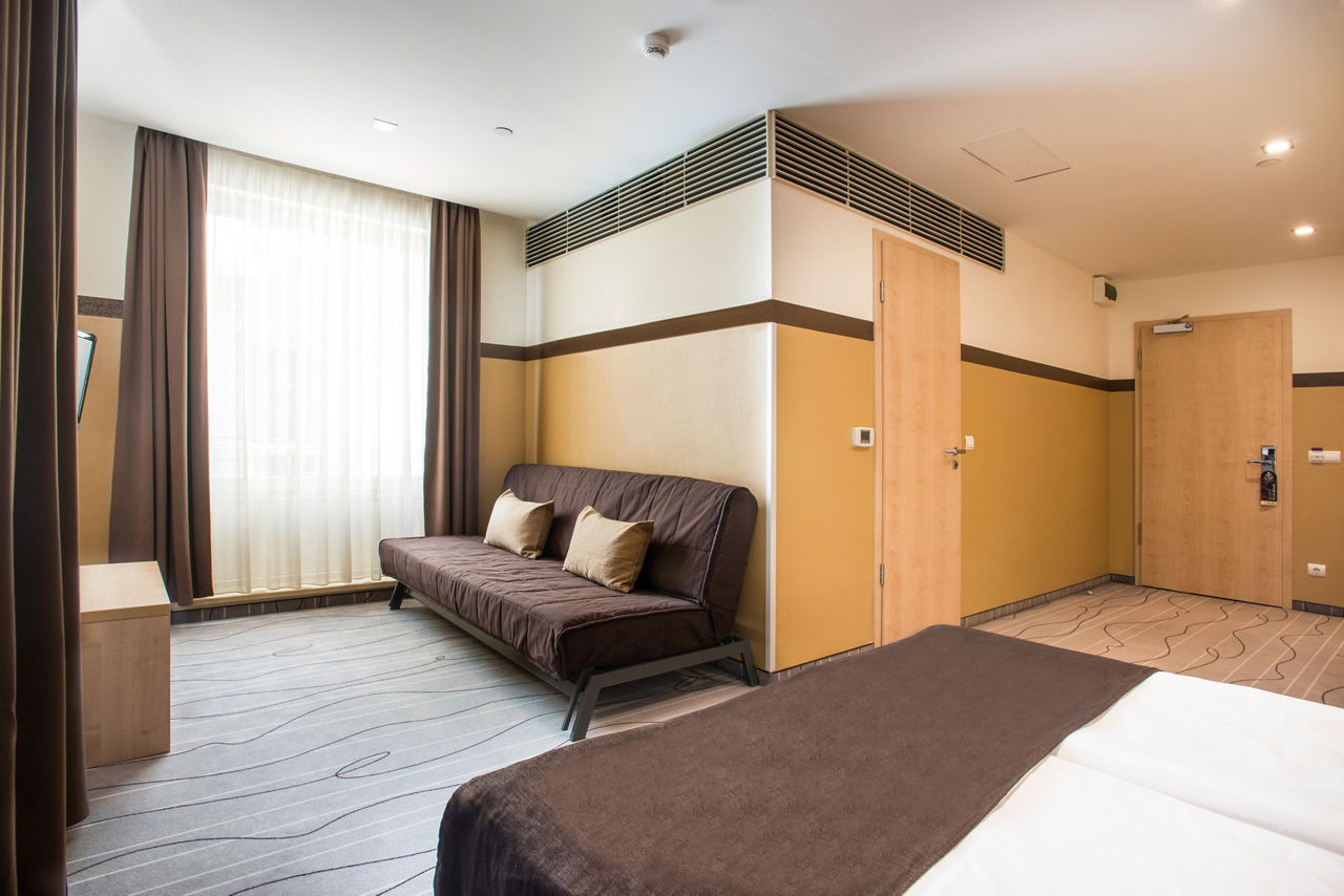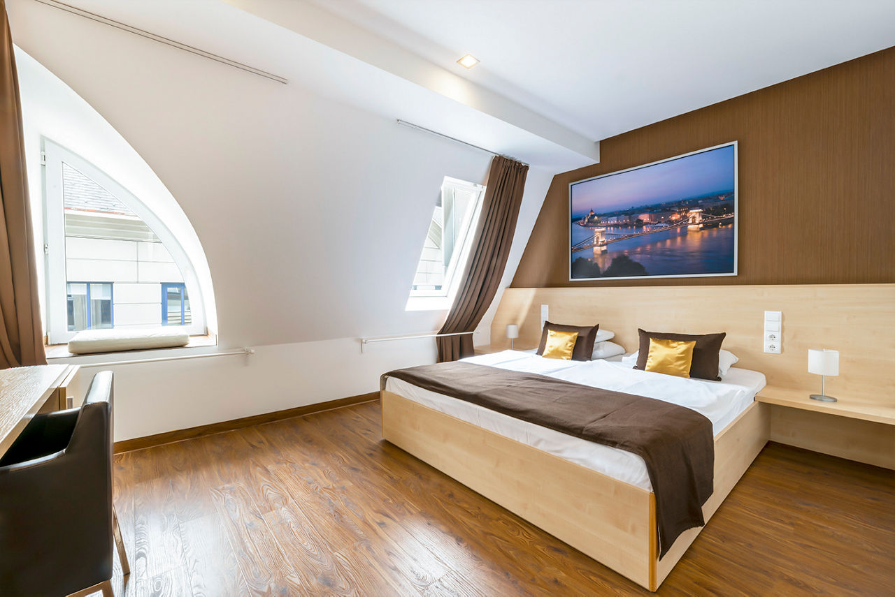 Located on the popular Vaci Street this modern hotel is ideal for shopping as well as getting out and about exploring this amazing city as everything is close to hand. After a hearty breakfast you will be ready to head off to see the sights and look forward to some retail therapy before hitting the bars, restaurants and the local nightlife. Saunter back to the hotel for a good night's sleep and feel refreshed for exploring somewhere new the next day! A great value base to experience all the local attractions.Standard Double or Twin rooms sleep up to 3 adults and have bathroom containing a bath or shower, air conditioning, hairdryer, flat screen television, mini-bar*, coffee making facilities, safety deposit box and free Wi-Fi. Rooms for sole use are also available.