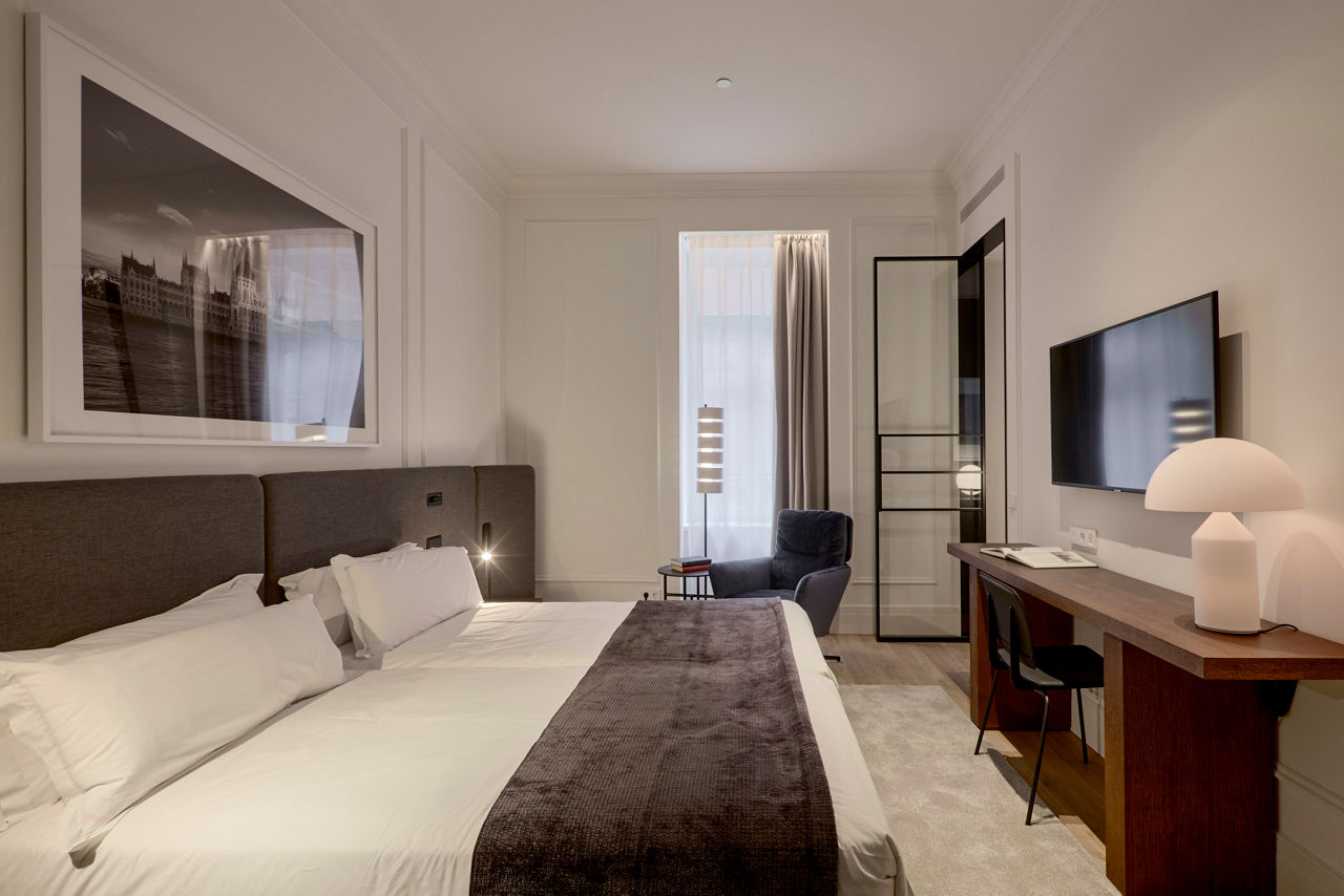 The Kozmo Hotel Suites & Spa is situated in a historic, conventional building that has kept its original elements, making the hotel historic but with hints of modern touches to make the hotel have a homely feel. Why not visit the Spa and Wellness Centre, with its training room, indoor swimming pool and a range of treatments, this is great to escape the bustling streets of Budapest. Located within steps of the nearest Metro Station, explore the beautiful city, with great attractions, bars, and restaurants. Or stay at the hotel and dine at the Restaurant Kozmo, serving a fusion of modern and traditional Hungarian cuisine or the Restaurant Bistro where you an enjoy show cooking.Standard double rooms sleep up to 2 adults and have bathroom containing a bath and separate shower, hairdryer, bathrobe and slippers, safety deposit box and flat screen television. Room upgrade options are also available.