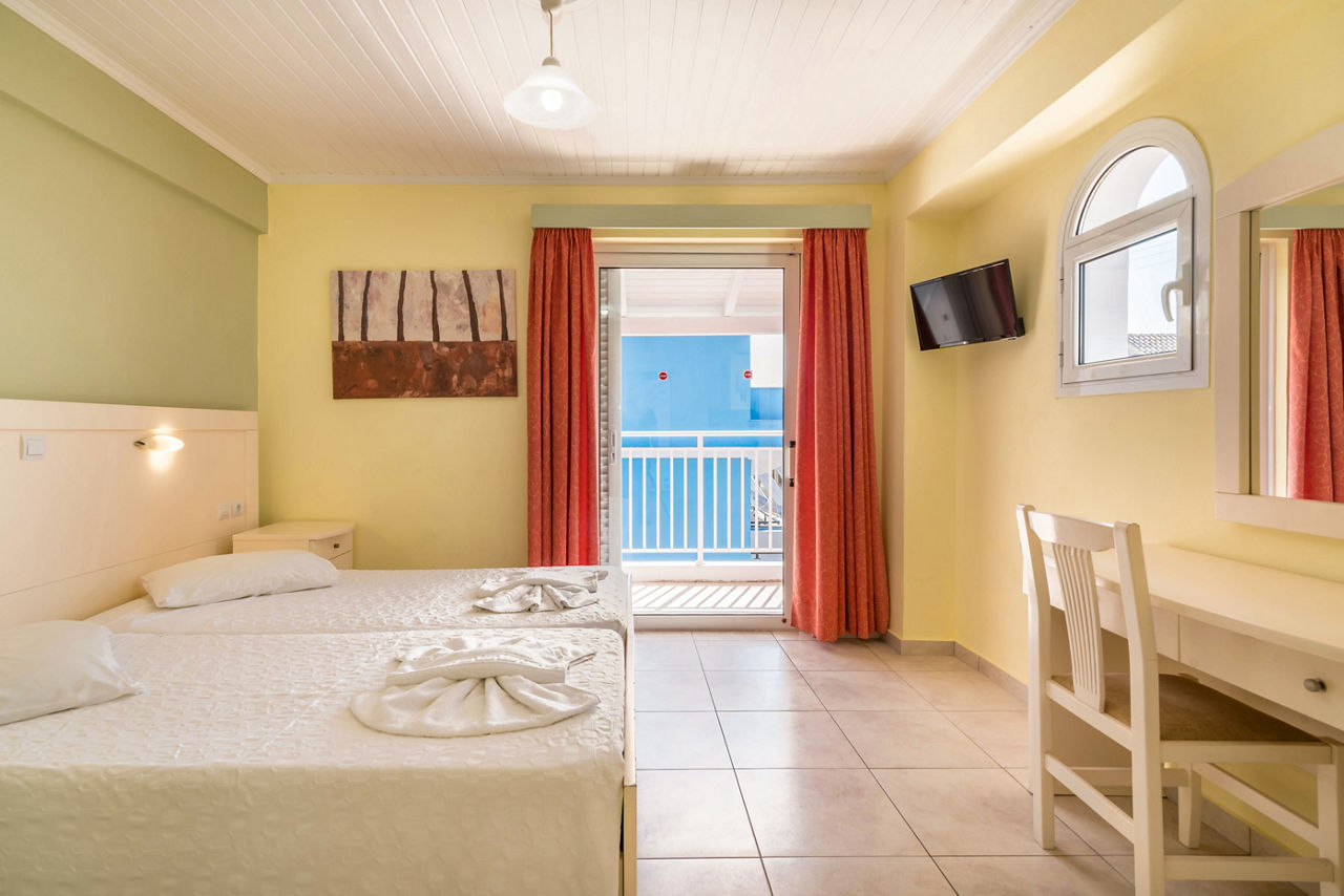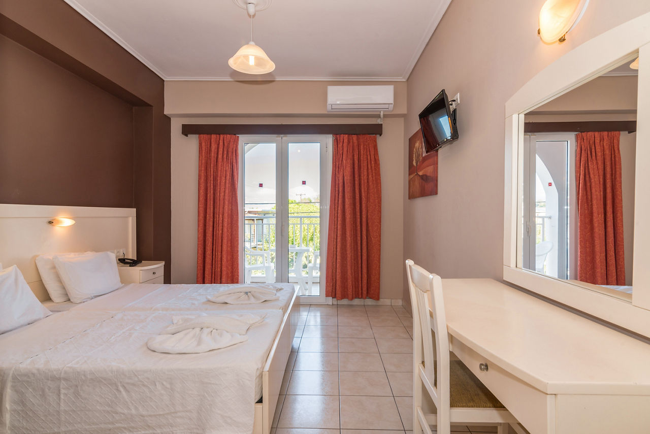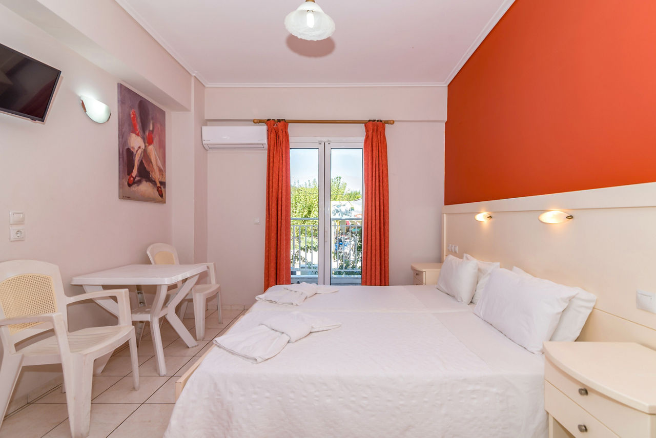 Studios sleep up to 2 adults and have bathroom containing a shower, air conditioning*, flat screen television, fridge, kettle, cooking ring and balcony or terrace.