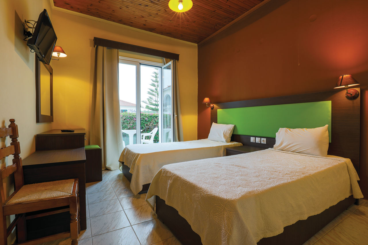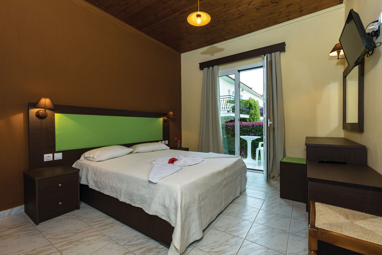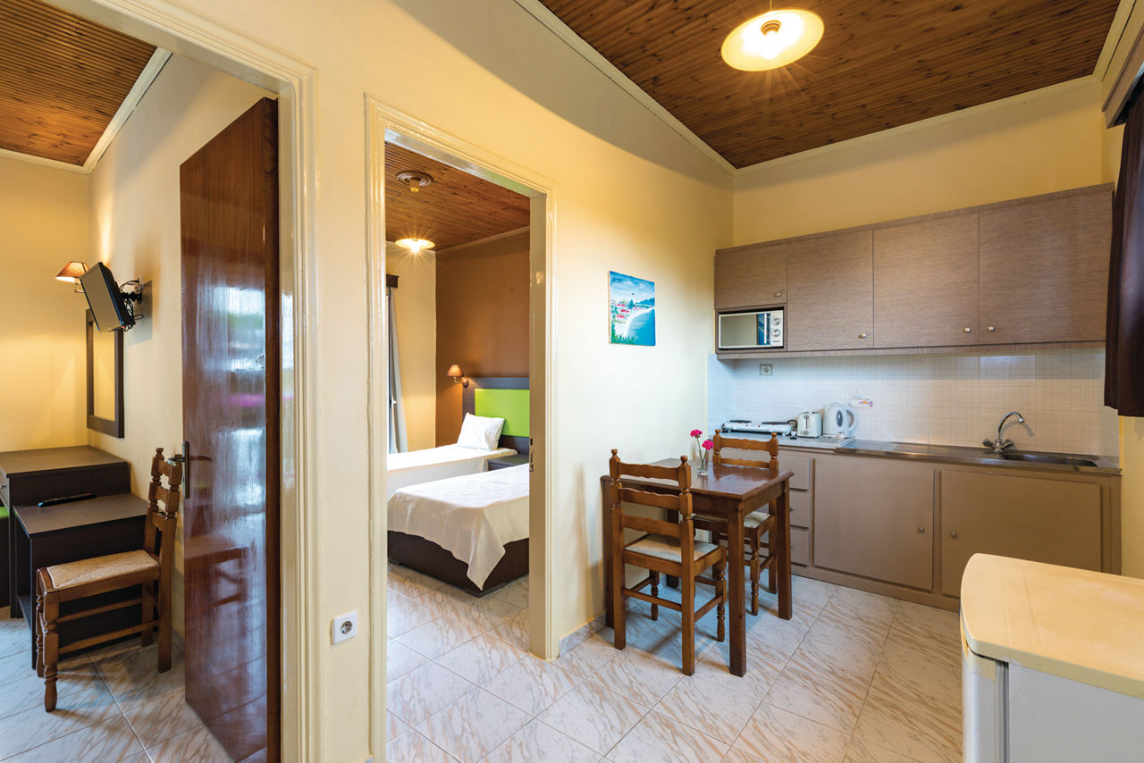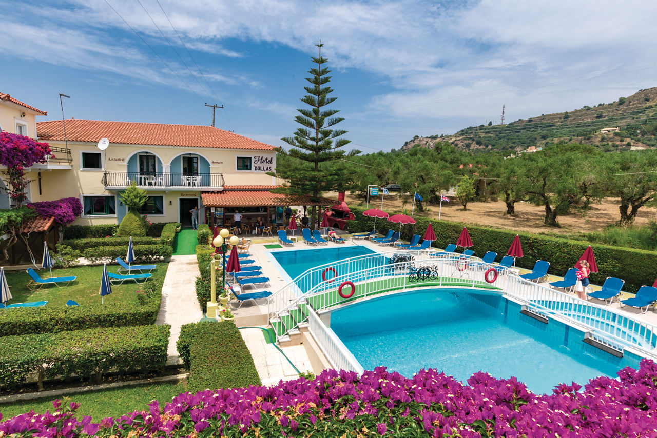 The friendly Dollas Apartments are set in a quiet spot on the outskirts of the popular resort of Kalamaki. The outdoor pool area, complete with a small snack bar, offers a calm and inviting space to unwind under the sun. Guests can explore a little further afield to reach Kalamaki resort centre, where a handful of shops, bars, and restaurants add local charm without overwhelming the peaceful surroundings. Simple, comfortable, and welcoming, Dollas Apartments provides a fuss-free base for enjoying the sun, sea, and laid-back lifestyle of Zakynthos.Studios sleep up to 3 adults and have bathroom containing a shower, air conditioning*, flat screen television, double cooking rings, fridge-freezer, kettle, toaster and balcony or terrace. Two Bedroom apartments and Three Bedroom apartments are also available.