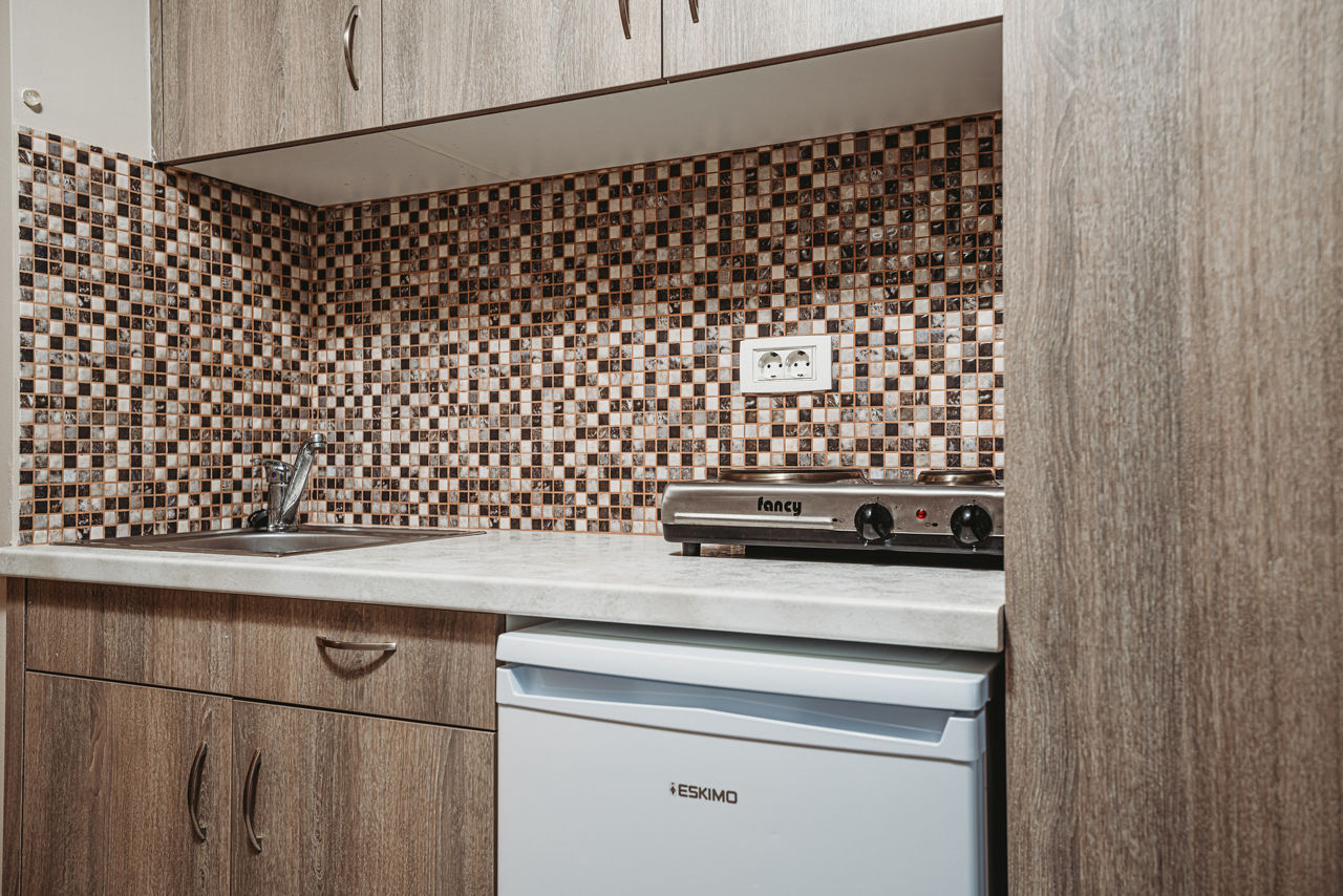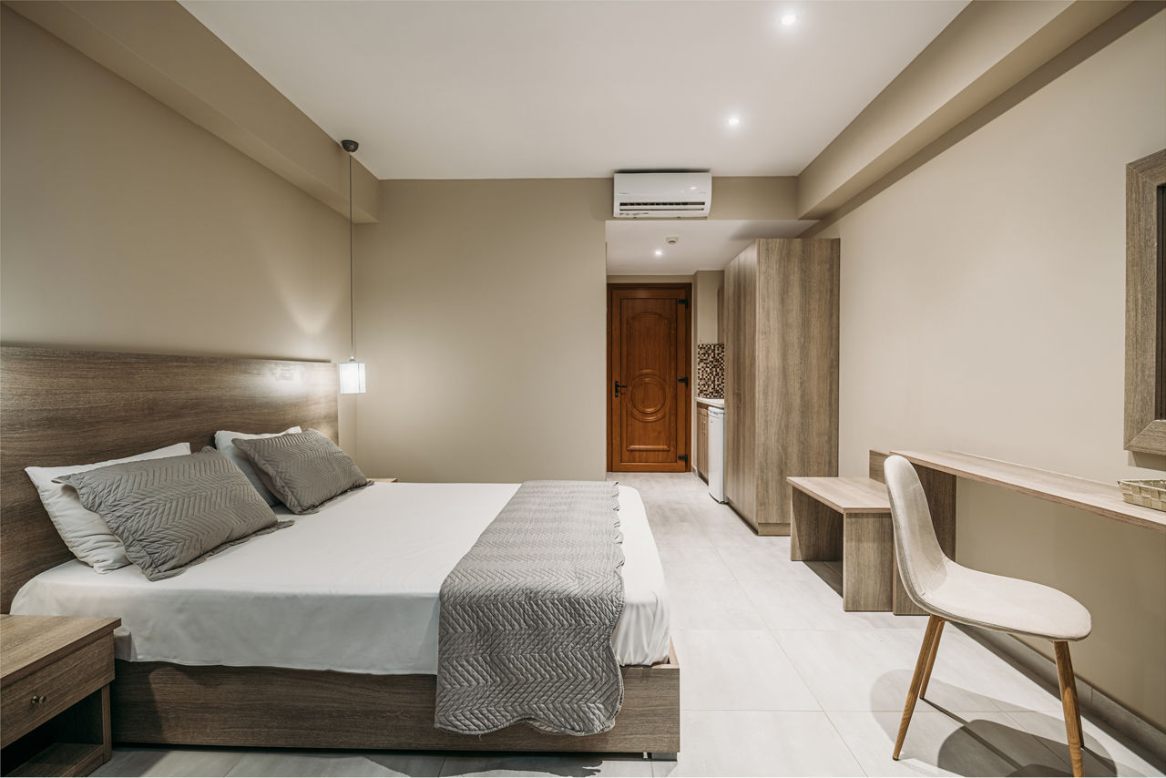 Standard studios sleep up to 2 adults and have bathroom containing a shower, air conditioning, flat screen television, fridge, kettle and balcony or terrace. Room upgrade options are also available.