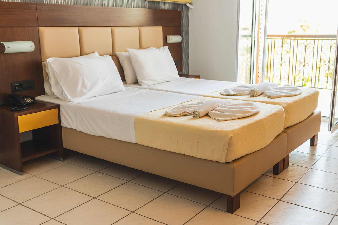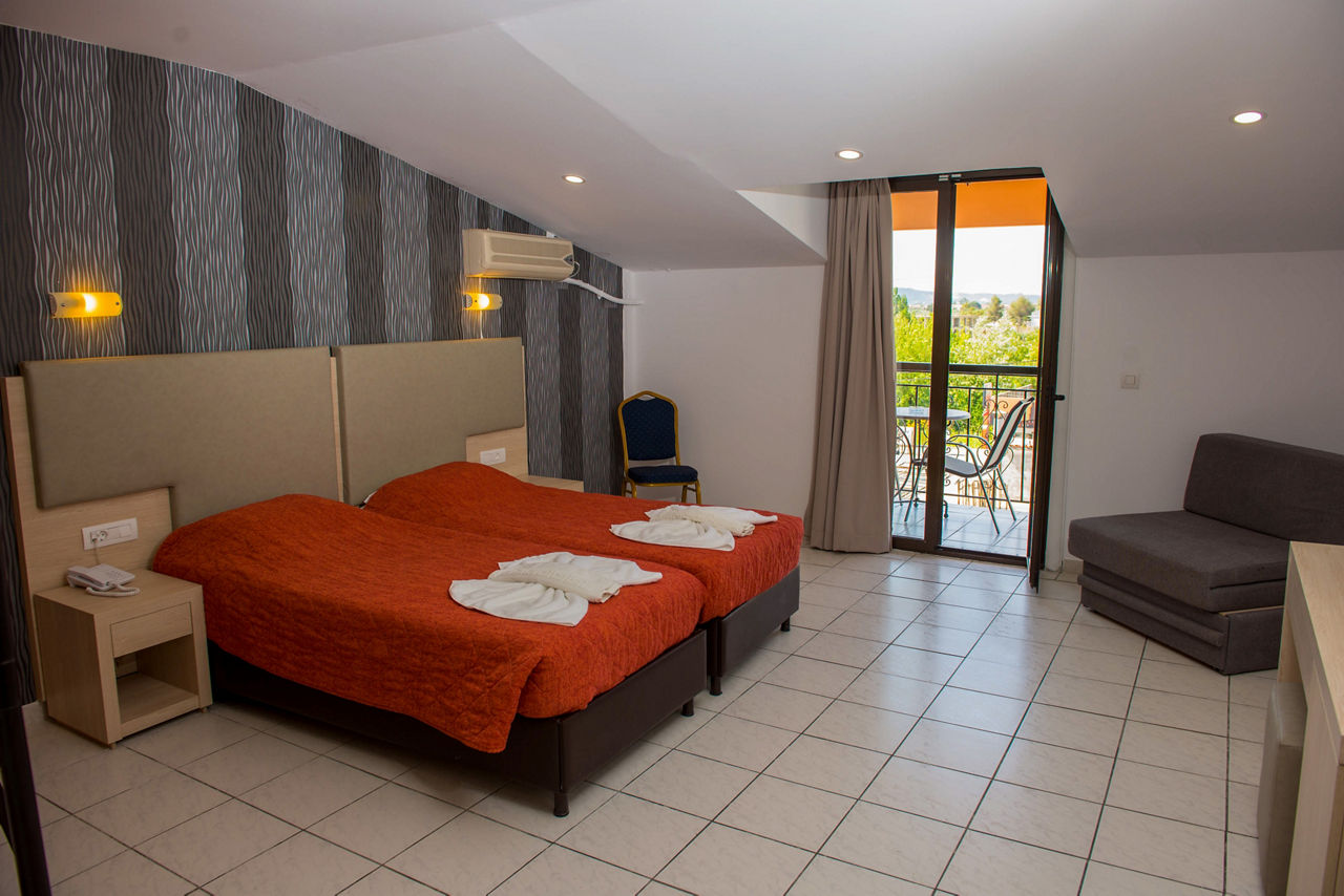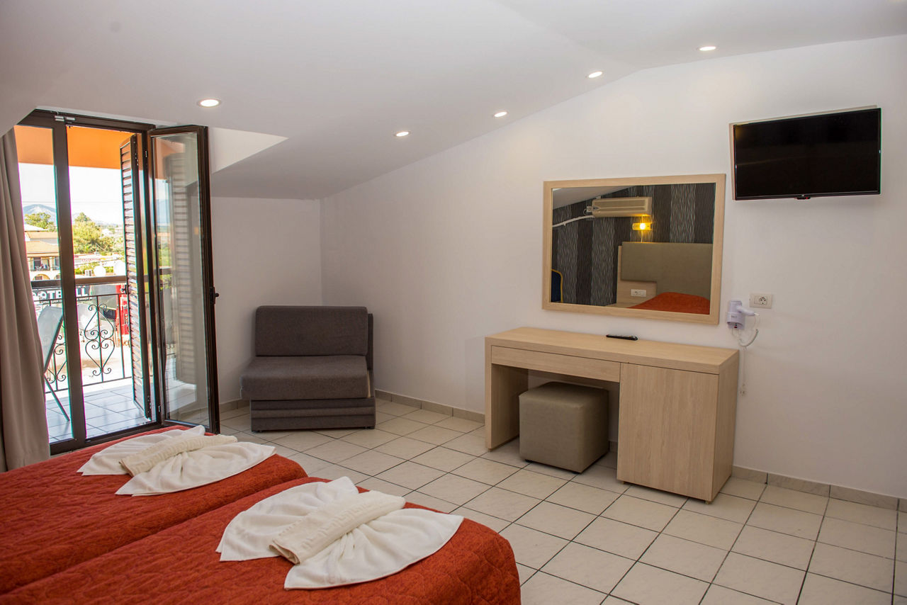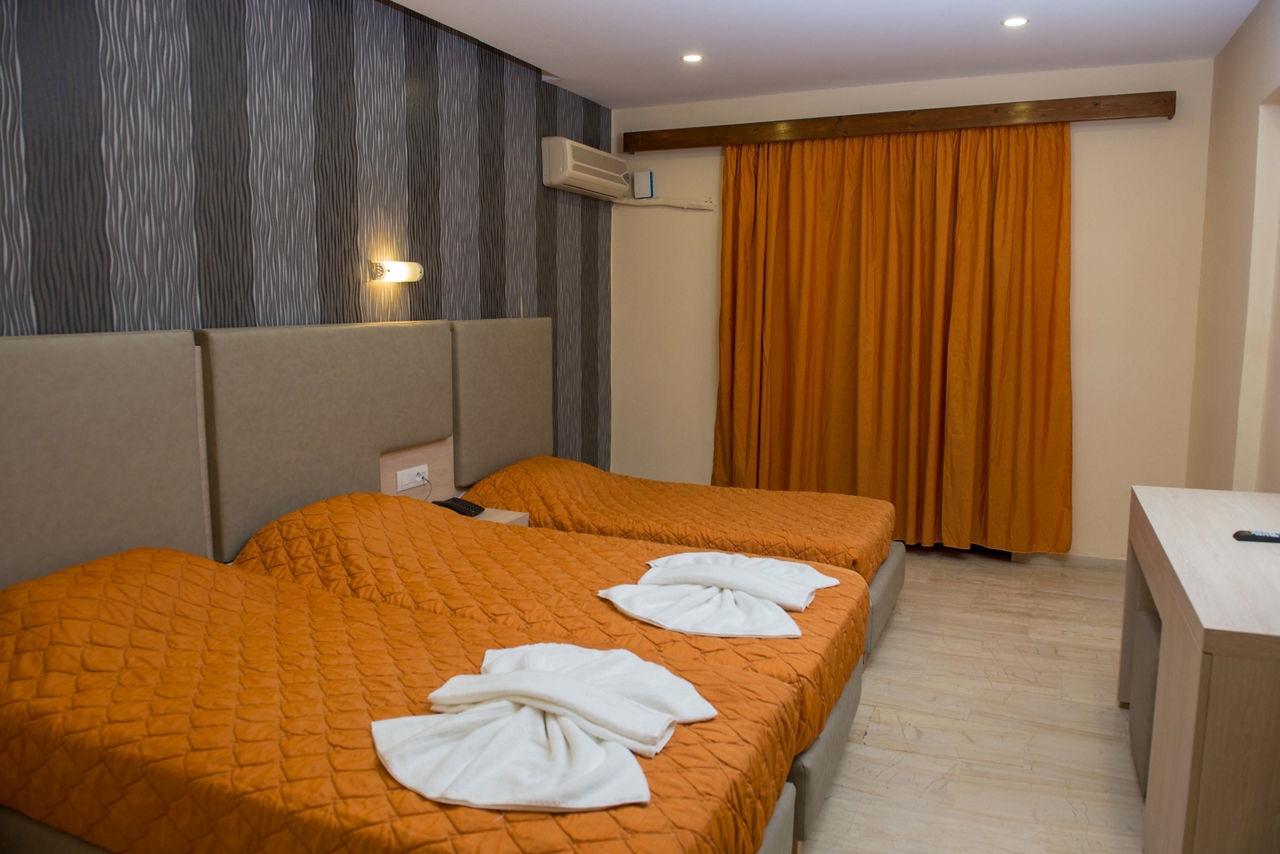 Great by name, and by nature, this upbeat party base is where the action?s at. There?s a handy on-site mini-market for stocking up on essentials, plus a golden sandy beach close by. It's postcode perfect for Laganas? lively nightlife too. In fact, it couldn?t be closer if it tried.Double and Twin rooms sleep up to 3 adults and have a bath with shower, television, hairdryer, fridge*, air-conditioning* and a balcony or terrace.