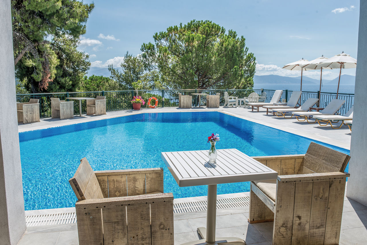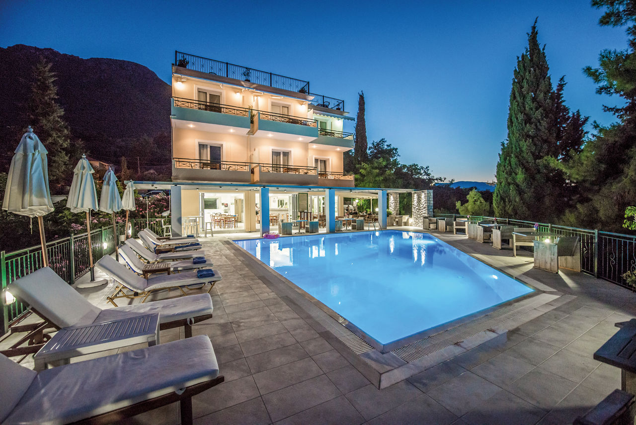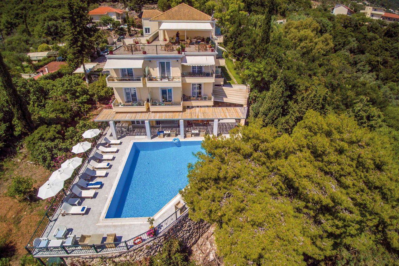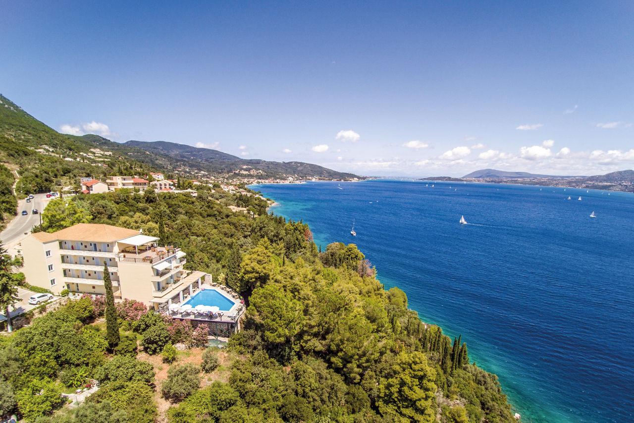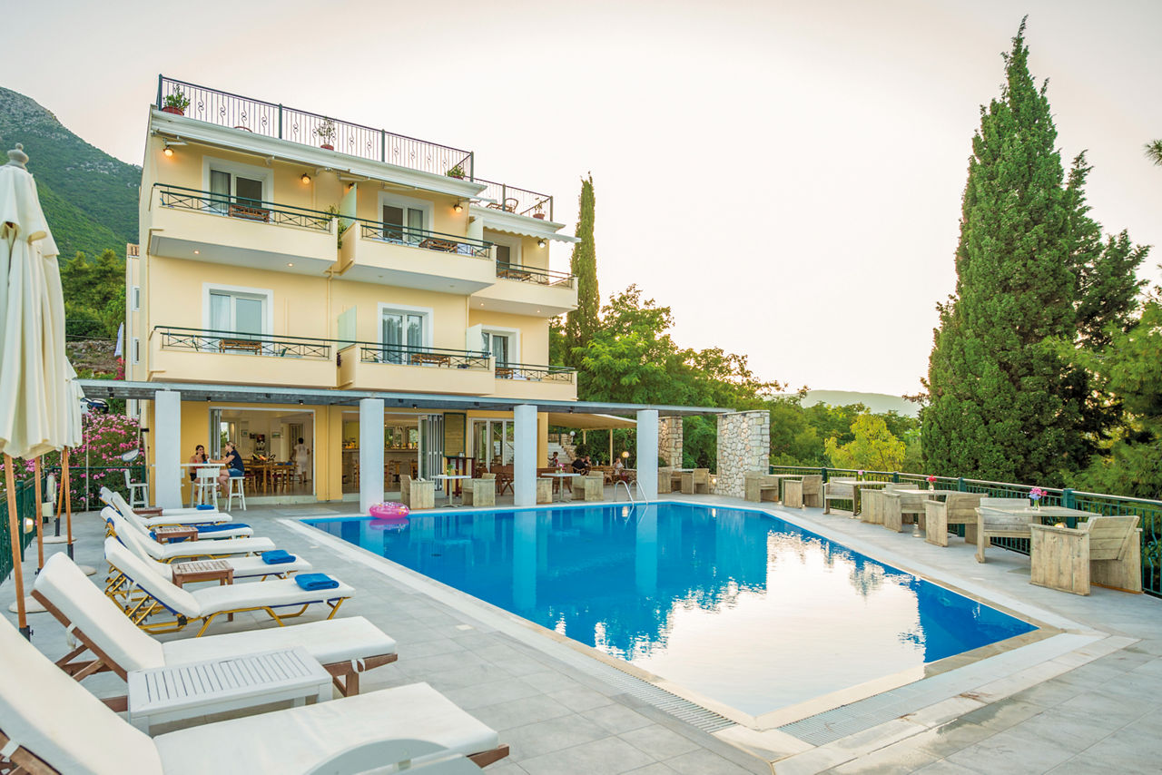 Savour the breathtaking views of the glistening Ionian Sea from the secluded clifftop location of the Aliki Hotel. This hotel is perfect for relaxation, from the intimate and peaceful atmosphere around the quiet pool area to the modern, fresh rooms, it?s a great retreat for couples looking to recharge. Beside the pool, a small bar serves refreshing drinks when needed and there?s also an area where breakfast is served too.Double rooms with Garden View sleep up to 3 adults and have bathroom containing a shower, air conditioning, flat screen television and balcony. Room upgrade options are also available.