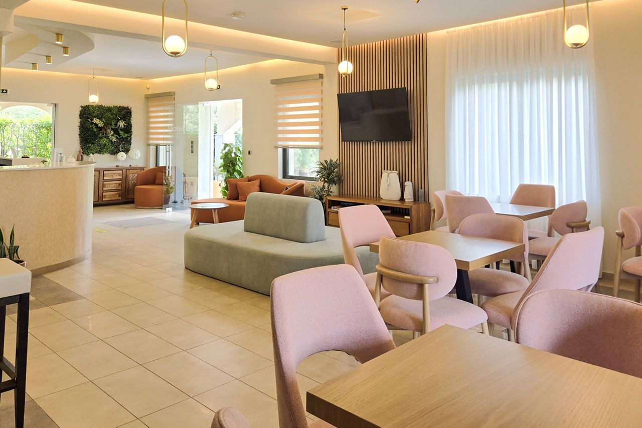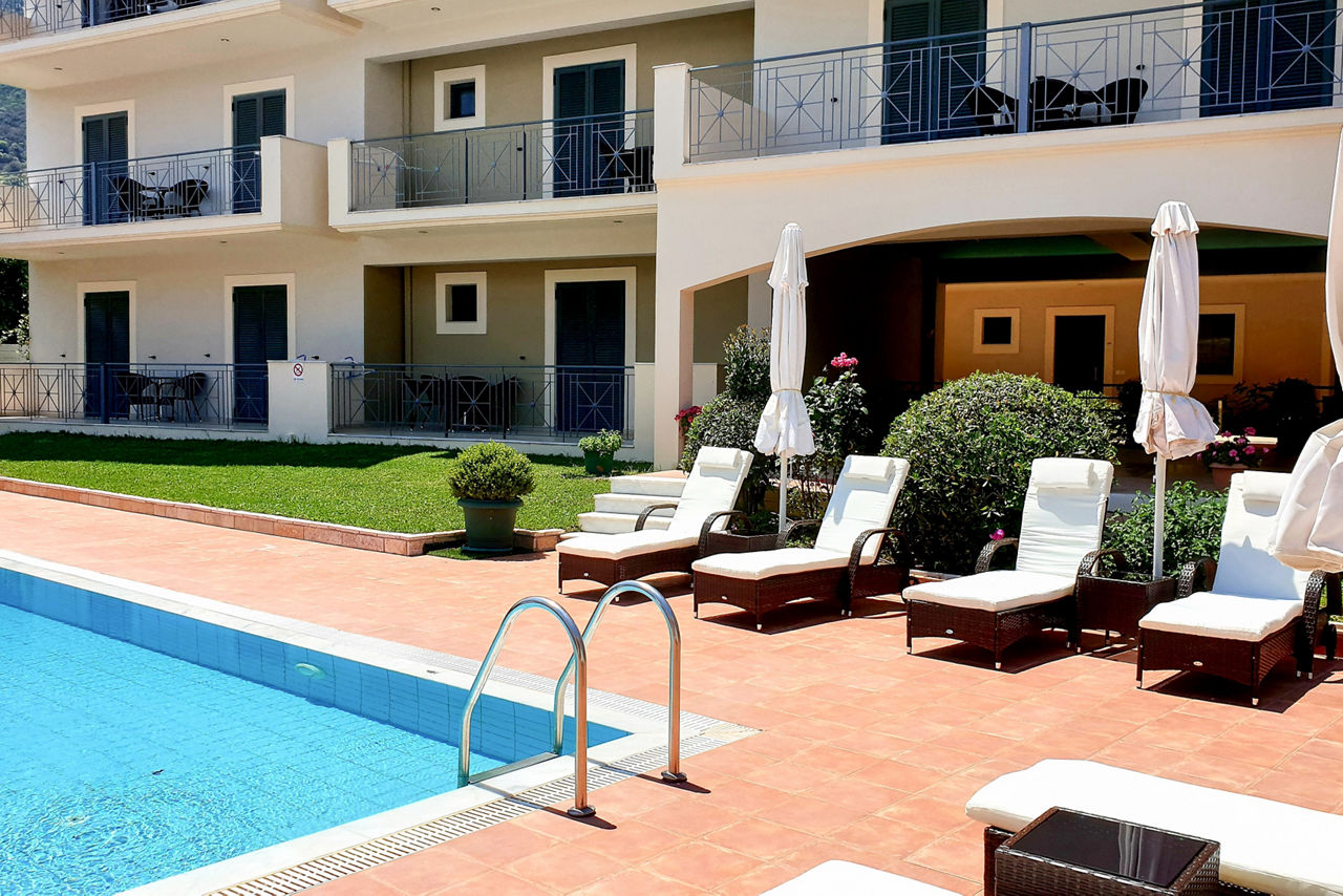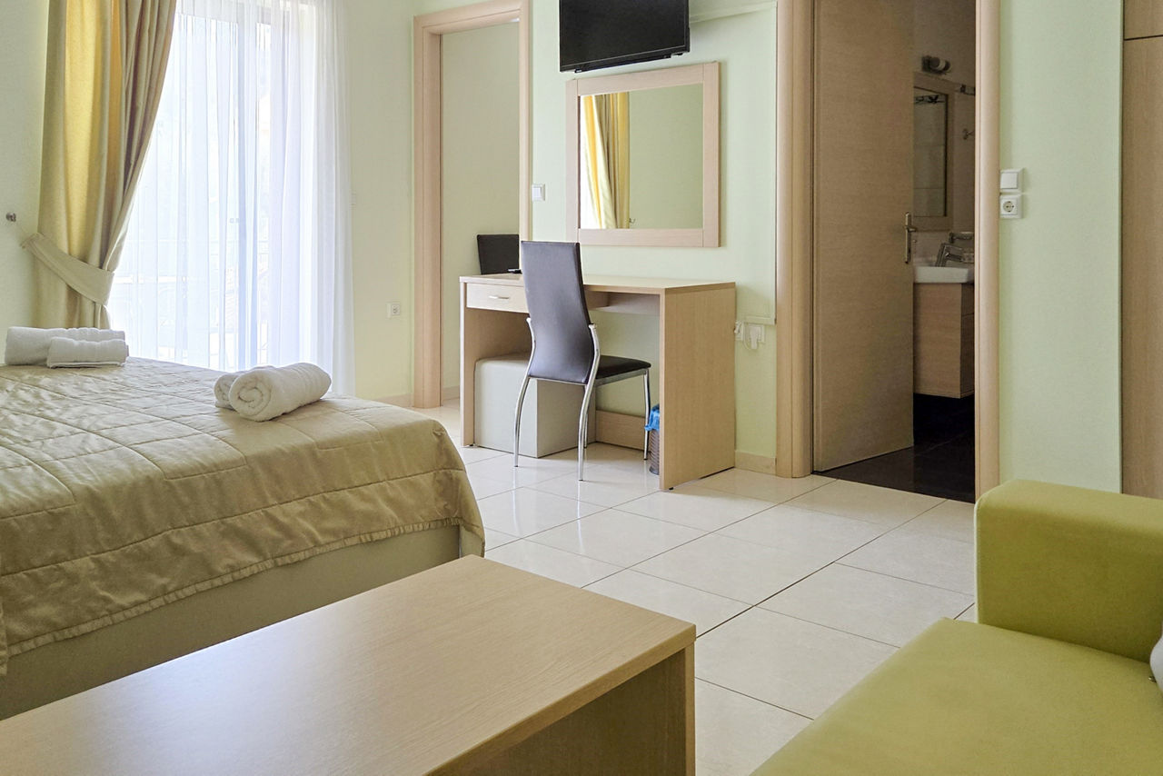 Superior studios on the Ground Floor sleep up to 2 adults and 1 child and have bathroom containing a whirlpool bath or shower, air conditioning, hairdryer, flat screen television, fridge, double cooking rings, tea and coffee making facilities and terrace. Junior suites on the Ground Floor sleeping up to 3 adults and 1 child are also available.