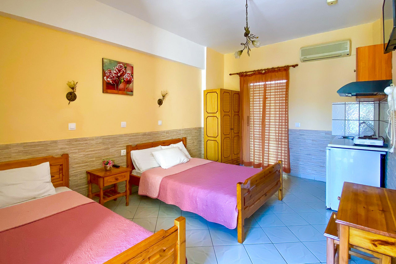 Looking for a traditional base in Lesvos? Call off the search! Virginia Studios has got everything you could need for a laidback stay. A family-run complex with seven studios on-site, you can expect warm Greek hospitality from check in to check out. Enjoy the flexibility of Self Catering. Fancy a night in? Make the most of your studio?s cooking facilities. Rather go out? Take a stroll into the resort. Frame your days around the outdoor pool, soaking up the sunshine. Anaxos is yours to explore too, with its blissful beach and selection of tavernas and bars.