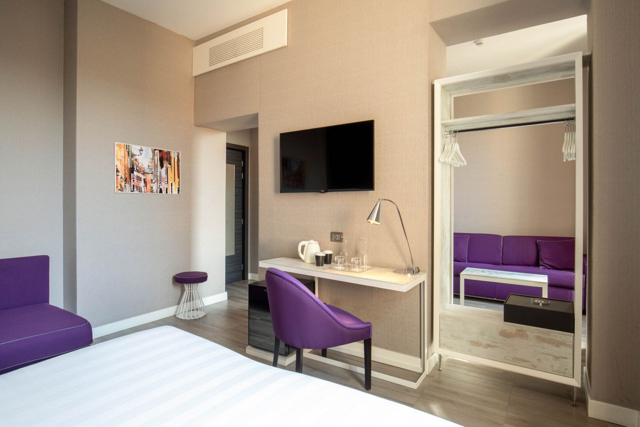 A trendy design hotel that?s great on the budget, The Guardian Hotel in Rome makes it easy to escape to the Eternal City. With a young and contemporary feel, comfortable rooms are stylishly decorated and there?s plenty of space to sit and enjoy a coffee in the breakfast room or relax on the outdoor terrace. Conveniently located in a quite side street, not far from Rome?s Termini Station, all the main attractions are within easy reach to explore by foot or on the metro.Classic Double or Twin rooms sleep 2 adults and have bathroom containing a shower, air conditioning, hairdryer, flat screen television, tea and coffee making facilities, minibar*, and safety deposit box. Sole Use and room upgrade options are also available.