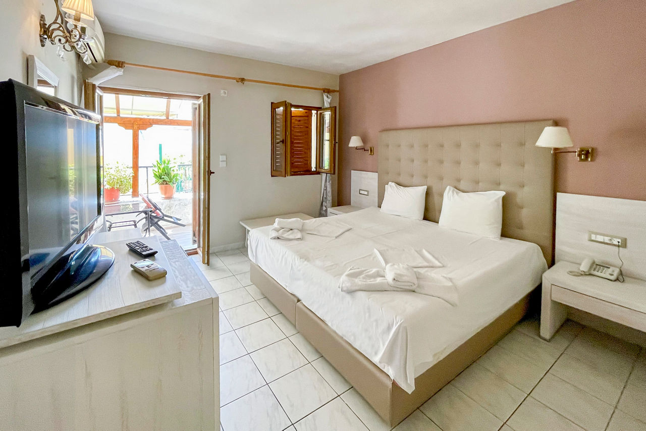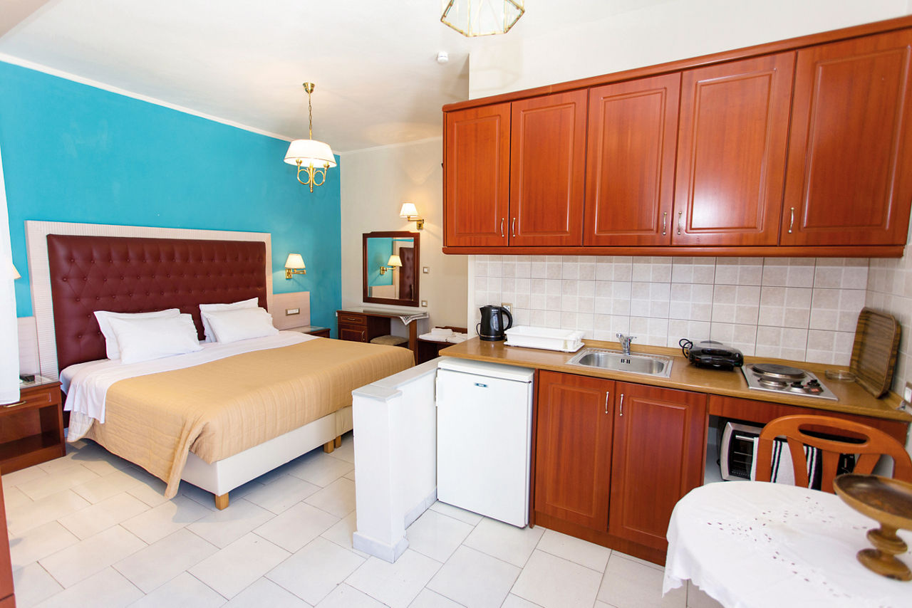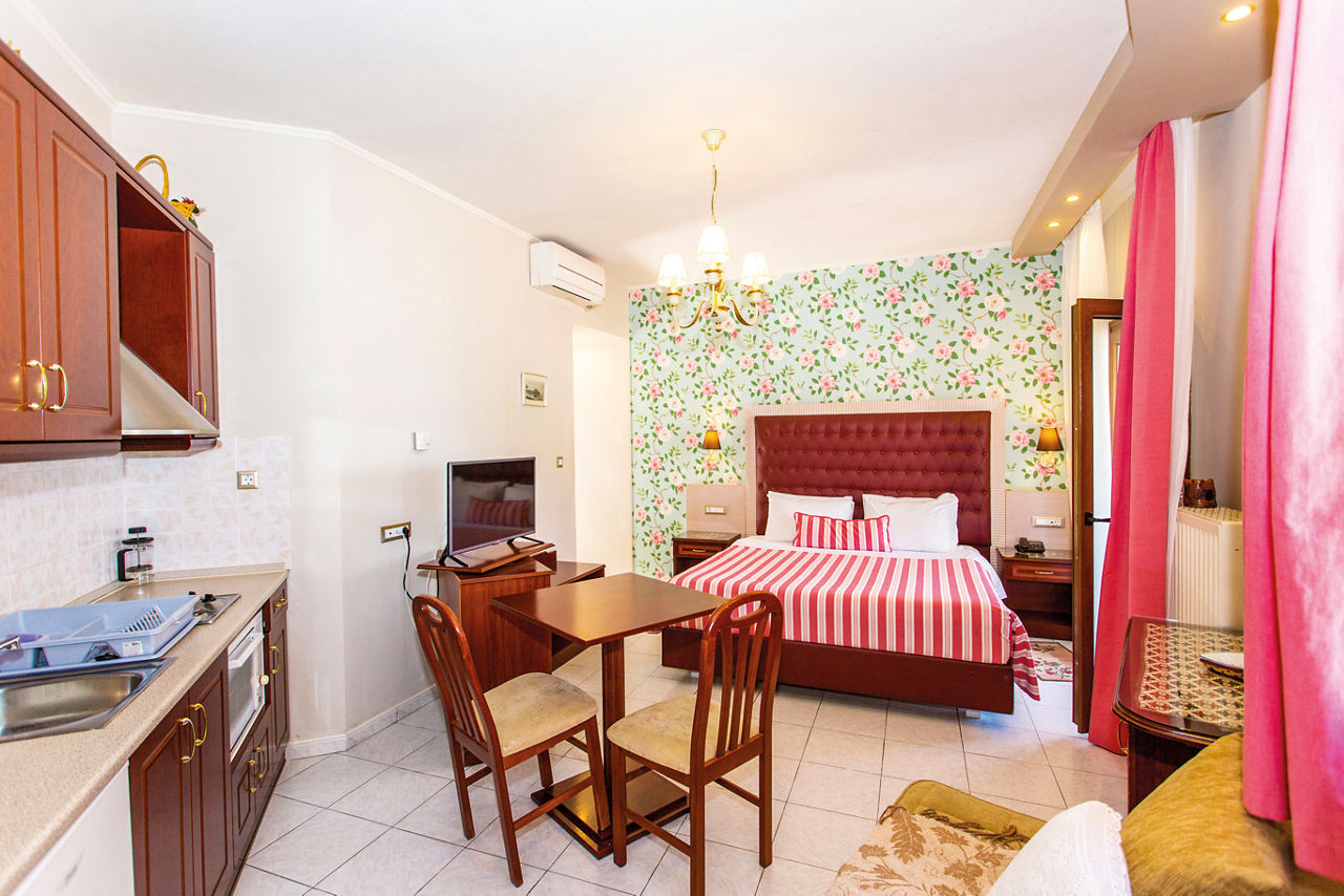 Olympic Studios & Apartments are ideally placed for exploring Parga. Located right in the middle of the resort centre, there are shops, bars and tavernas on the doorstep, making it easy to embrace all this beautiful town has to offer. Krioneri Beach is also a short walk away too, making this postcode-perfection. The studios and apartments are well-presented, with a nod to traditional Greek style. It's fair to say Olympic Studios & Apartments come equipped with the essentials for a self catering stay.Studios sleep up to 3 adults and have bathroom containing a shower, air conditioning, flat screen television, fridge, cooking rings, kettle and balcony or terrace. One Bedroom apartments sleeping up to 4 adults and 1 child are also available.