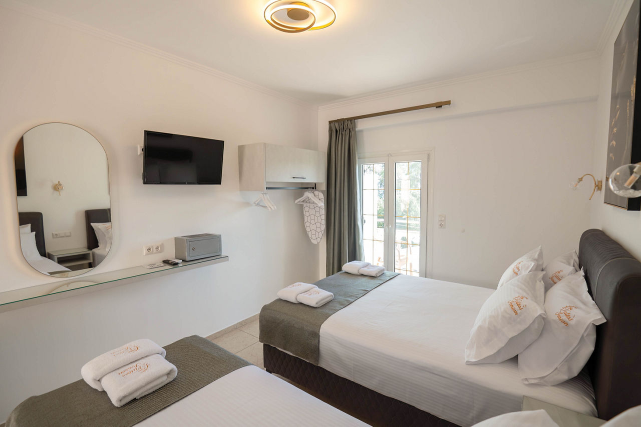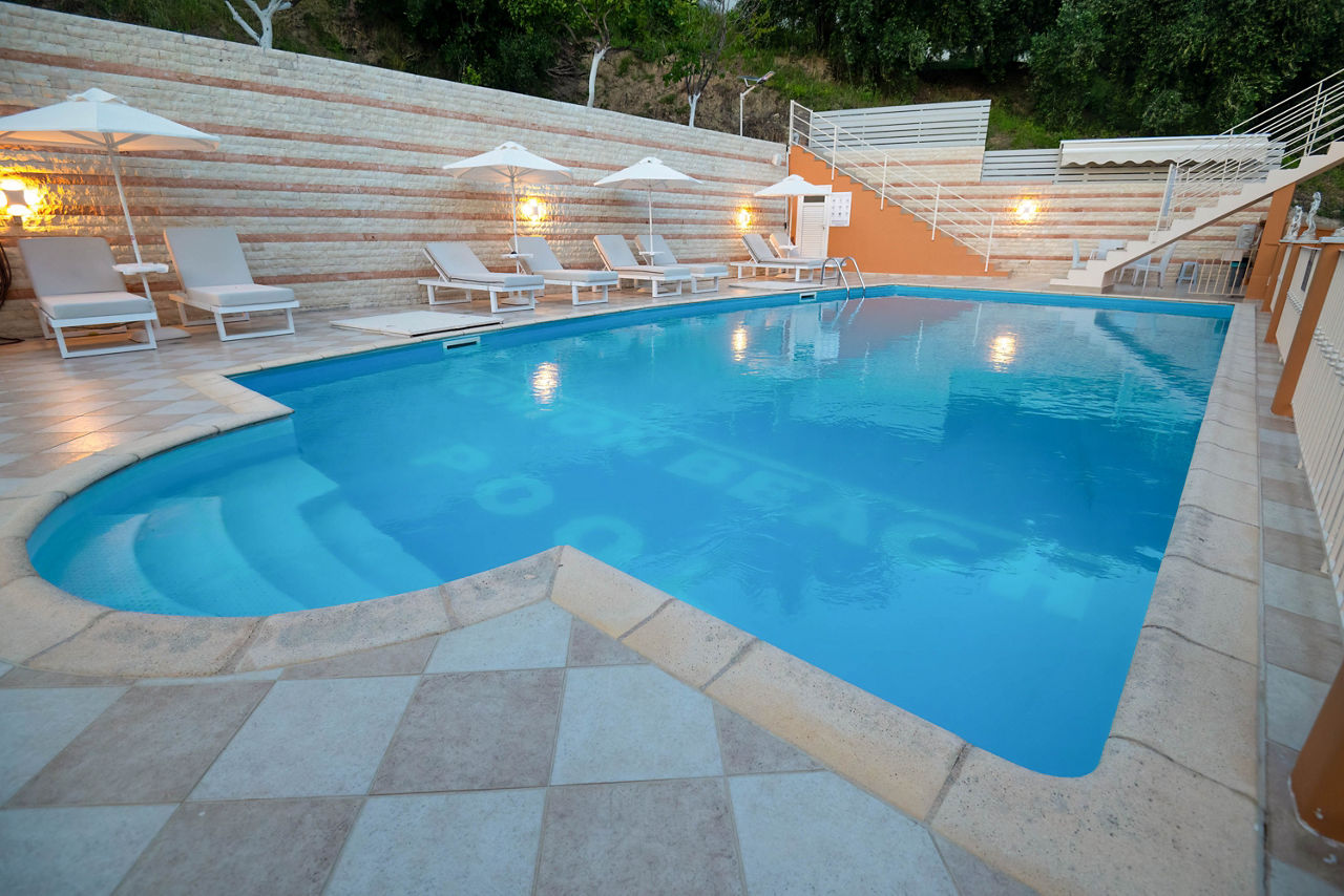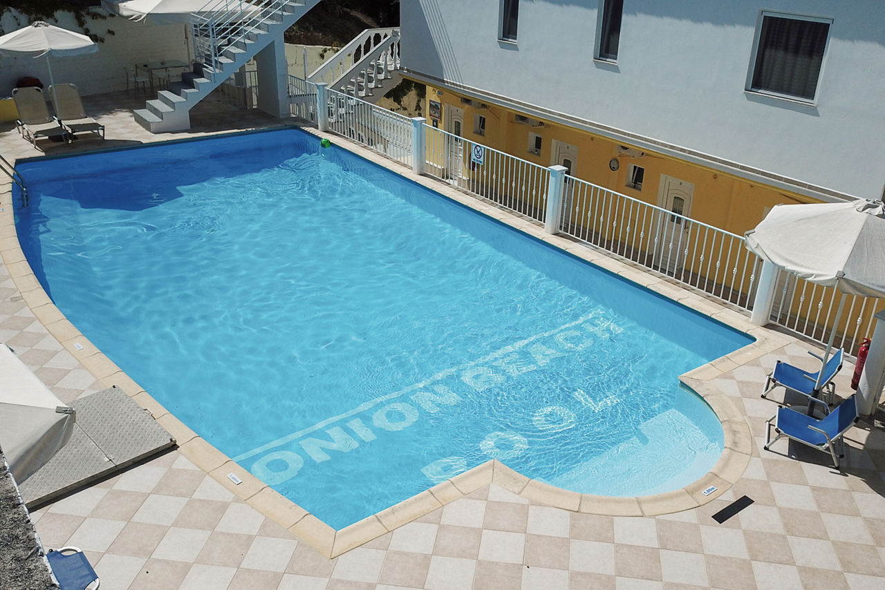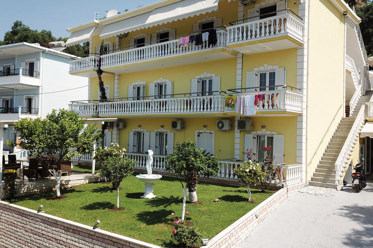 The Valtos Ionion scores rave reviews thanks to its location, being positioned between the beautiful Valtos beach and Parga's picturesque harbour. Studios and apartments are simply furnished and well-presented, designed in a typical Greek style. On-site is an outdoor pool, perfect for cooling off in during the day, whilst evenings can be spent in one of the bars and tavernas along the waterfront.Studios sleep up to 3 adults and have bathroom, air conditioning*, television, fridge, kettle, coffee making facilities, double cooking rings and balcony or terrace.