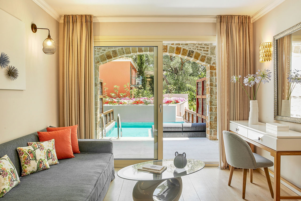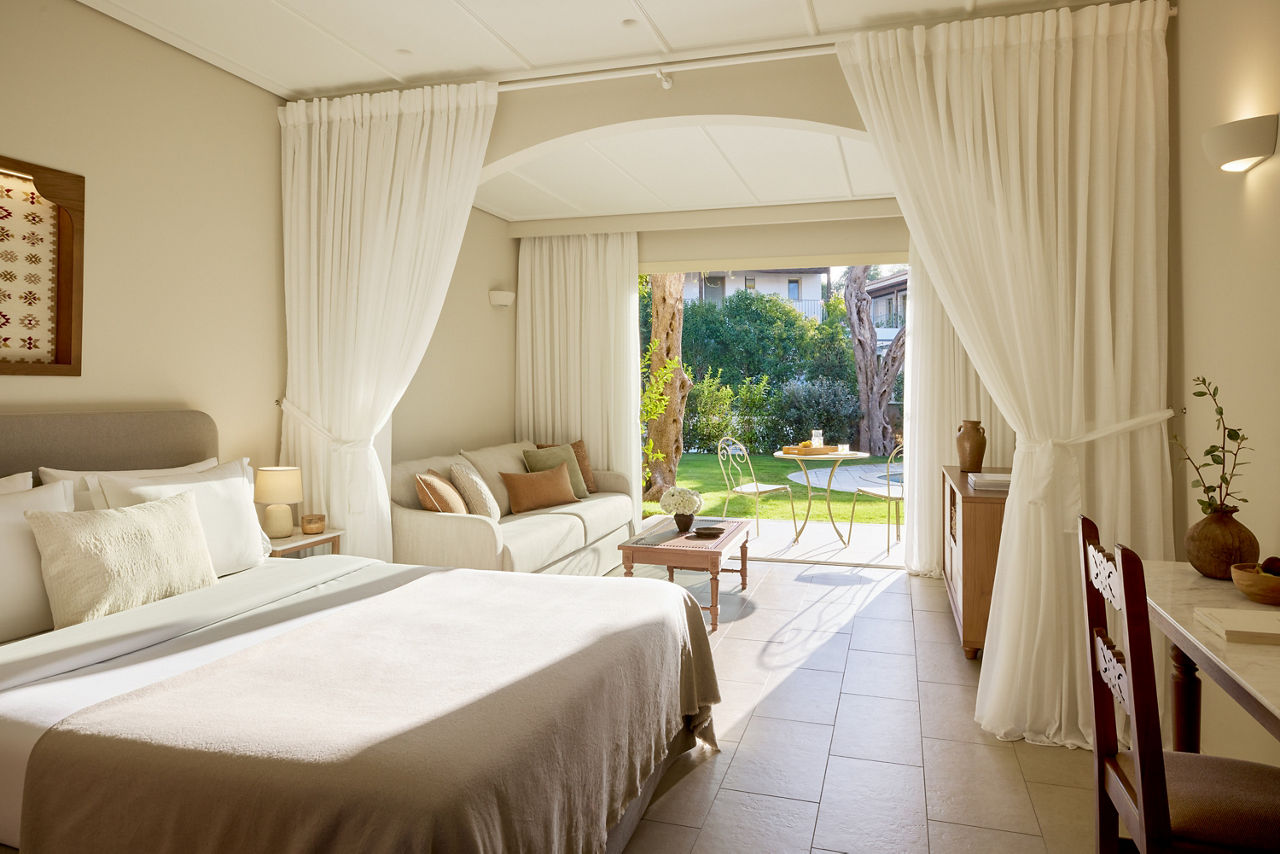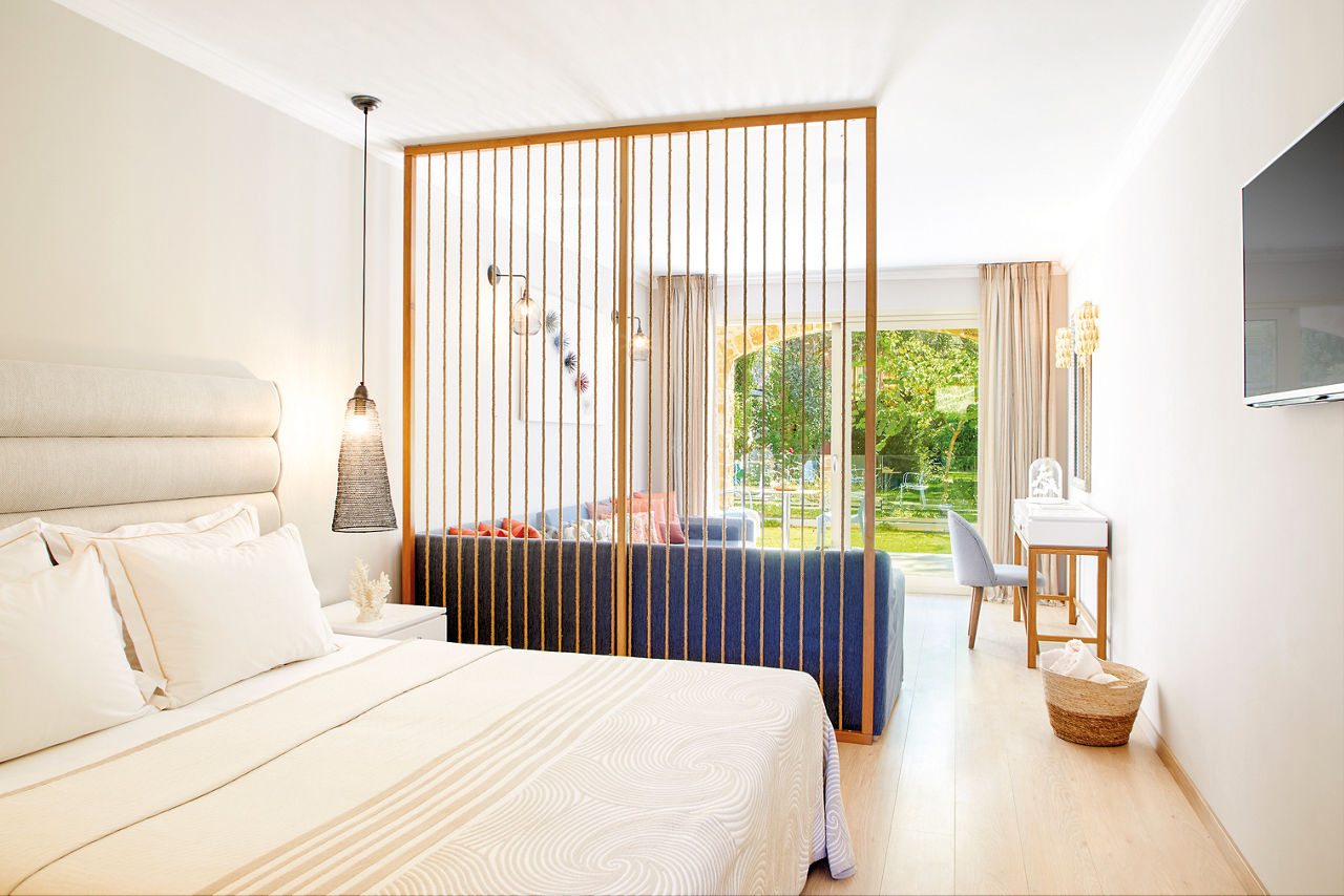 Deluxe rooms sleep up to 3 adults and 1 child and have bathroom, air conditioning, hairdryer, flat screen television, mini-bar* and balcony or terrace. Prestige suites with Private Pool sleeping up to 3 adults and 1 child and Grand suites sleeping up to 4 adults are also available.
