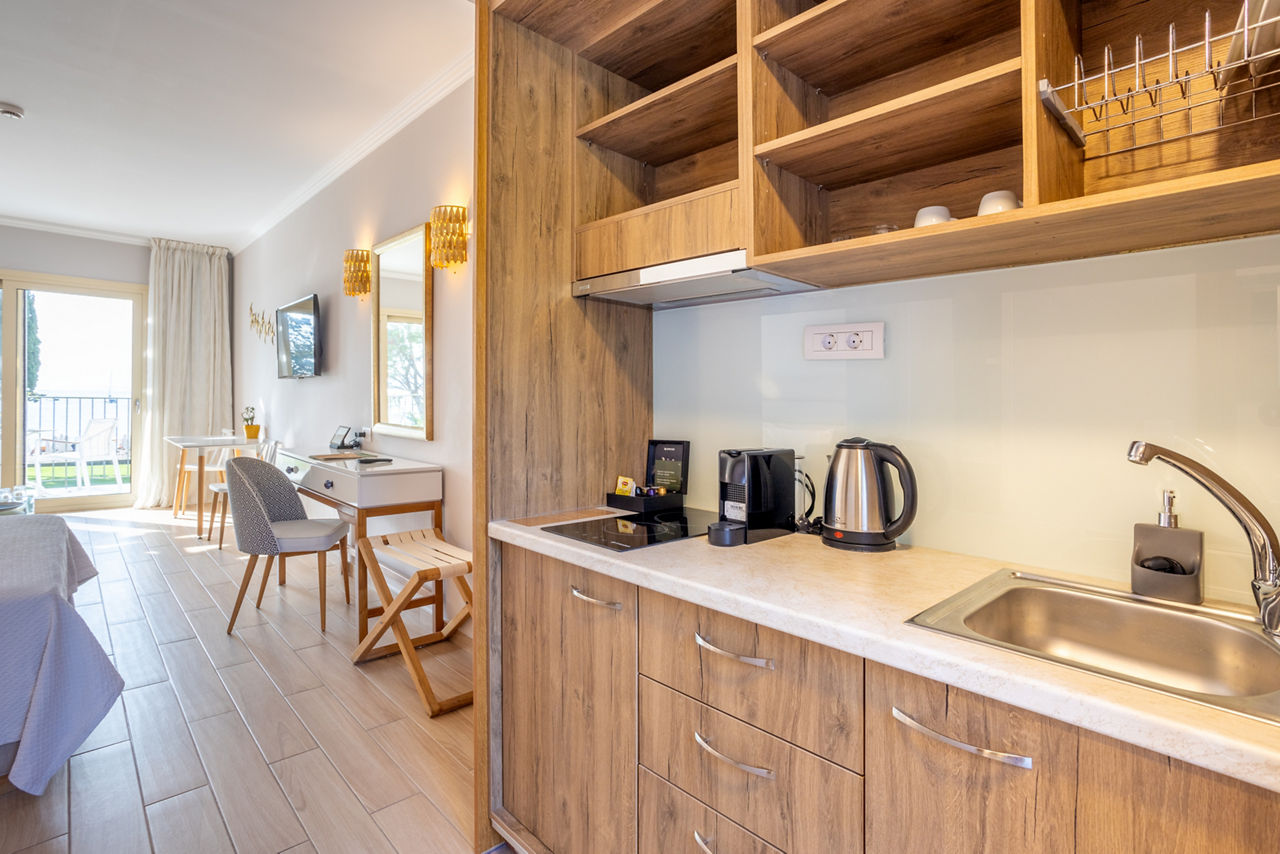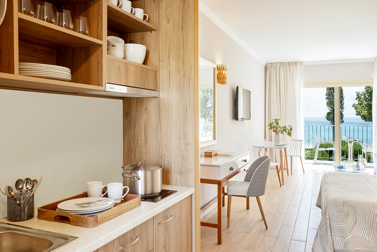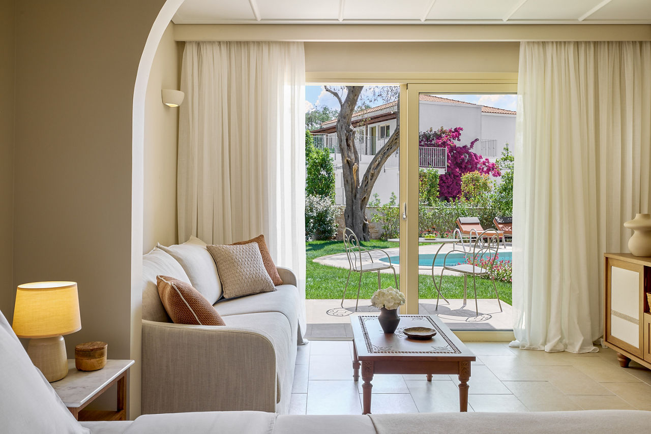 Deluxe rooms sleep up to 3 adults and 1 child and have bathroom, air conditioning, hairdryer, flat screen television, mini-bar* and balcony or terrace. Prestige suites with Private Pool sleeping up to 3 adults and 1 child and Grand suites sleeping up to 4 adults are also available.