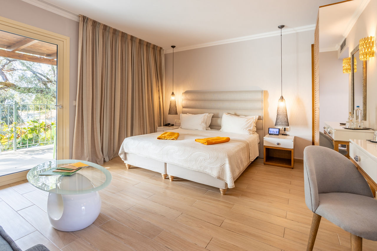 Set within lush gardens with a real village feel, Parga Beach Resort is a beachfront haven. Soak in the sweeping views of the coastline and Parga Castle from the terraces of the restaurants, or simply relax in the serene atmosphere. Rooms are dotted between olive groves and are decorated in tranquil, neutral tones for a traditional feel. Why not upgrade to a room with a private pool for a real treat? The fantastic All Inclusive Plus package includes visits to the Alselea and Kokona à la carte restaurants, need we say more? Just picture yourself sampling delicious cuisine as the sun sets?Deluxe rooms sleep up to 3 adults and 1 child and have bathroom, air conditioning, hairdryer, flat screen television, mini-bar* and balcony or terrace. Prestige suites with Private Pool sleeping up to 3 adults and 1 child and Grand suites sleeping up to 4 adults are also available.