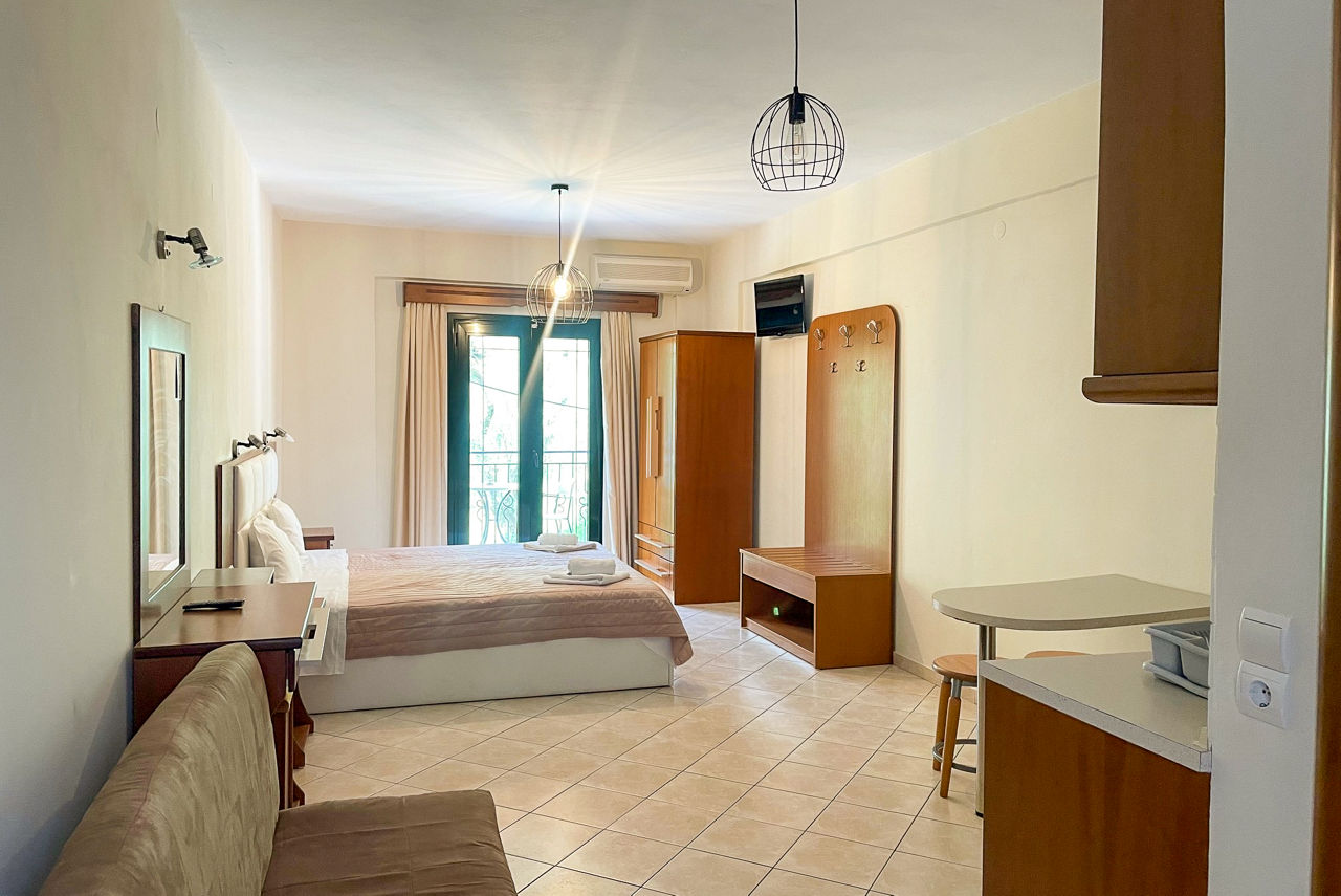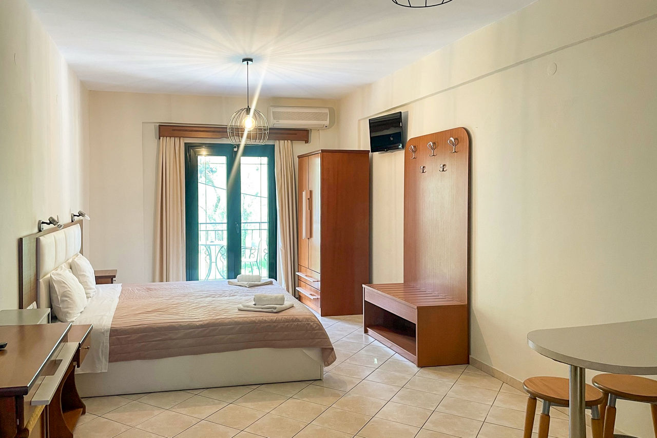Margarita Hotel ticks the laidback box, and then some! This family-run spot offers a warm welcome, a friendly atmosphere and spectacular views from its hillside location. A sparkling pool with the ocean as your backdrop? You can add that to the list too. The beach is within reach, if you fancy rolling out your towel on Parga?s picturesque shores. You?re only 1km from the resort centre too, so take your pick from a stellar selection of shops, bars, restaurants! Back at the hotel, retreat to your spacious room for a restful night?s sleep. If you were looking for traditional charm in Greece, you?ve found it.Studios sleep 3 adults and have twin beds, bathroom with shower only, cooking rings, fridge, air-conditioning*, TV, safety deposit box* and a balcony or terrace.
