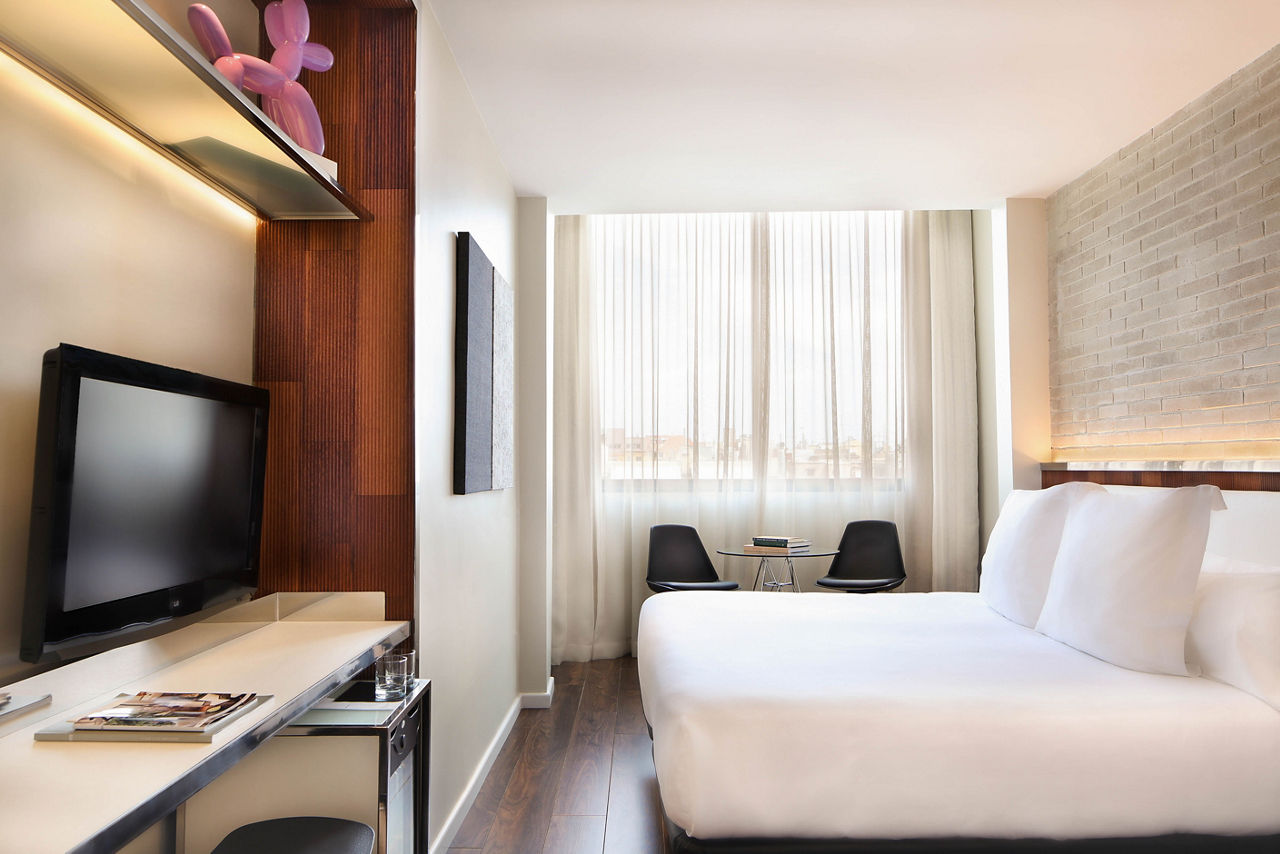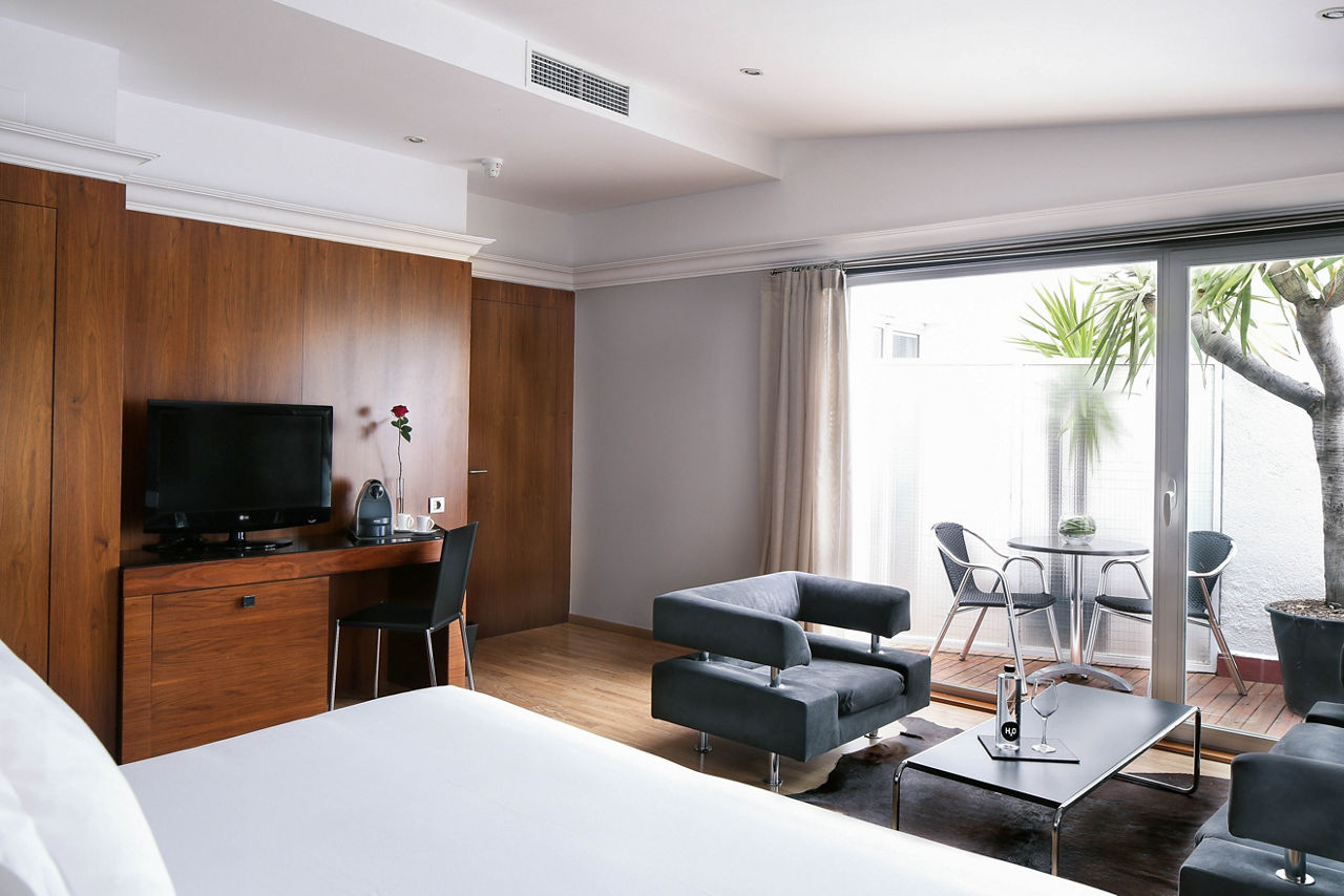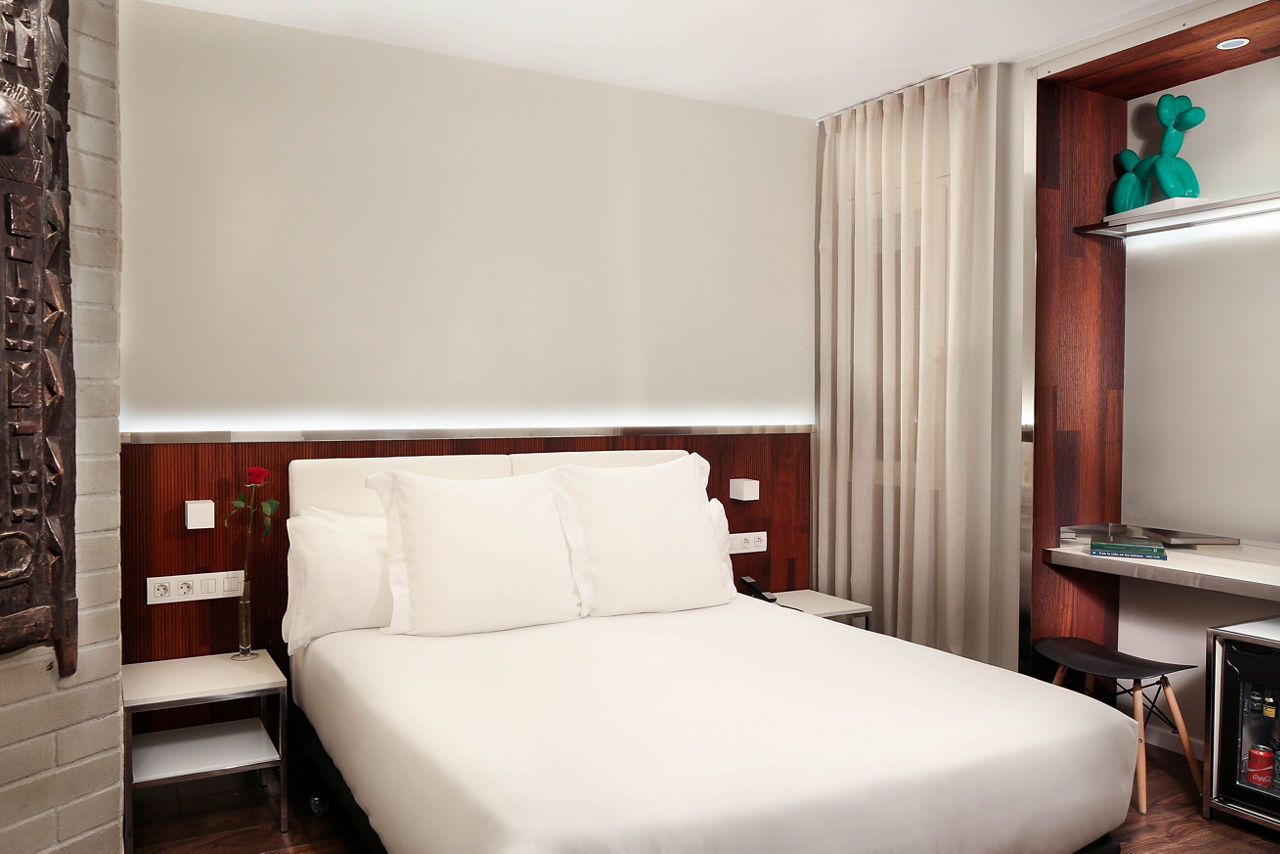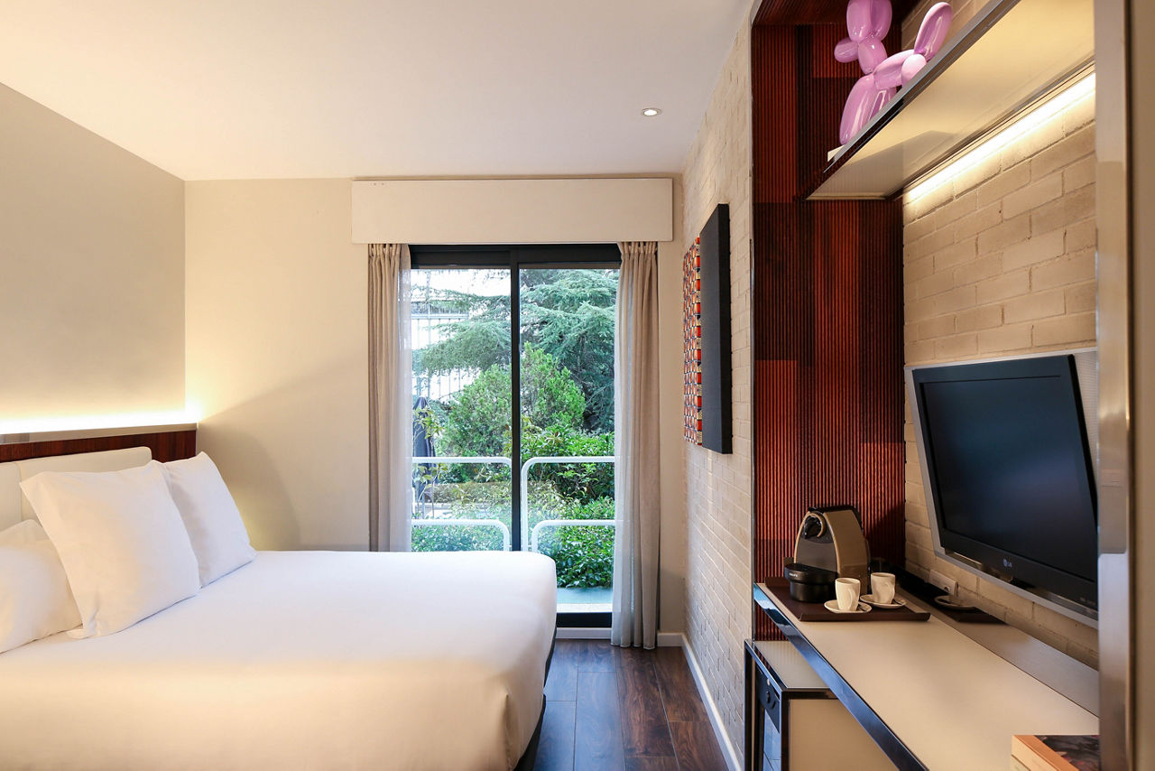 Looking for tranquillity in the heart of the action then the Hotel Balmes has it all. A cool interior garden and pool lets you relax and kick back after a day exploring this most vibrant of cities. Showcasing cosy, minimalist rooms packed with comfort, and a stylish marble bar extending into the garden terrace, the focus really is on service and style, with ancient Egyptian arifacts enhancing the space. In Eixemple you are never very far from the must-see sights and the Hotel Balmes offers the perfect base for exploring this historic art filled city on foot, or picking up the ever-handy metro. Your next city break is a click away!Executive Double rooms sleep up to 2 adults and have bathroom containing a bath or shower, air conditioning, bathrobe and slippers, safety deposit box*, flat screen television, coffee making facilities and mini bar*. Room upgrade options and rooms for Sole Use are also available.