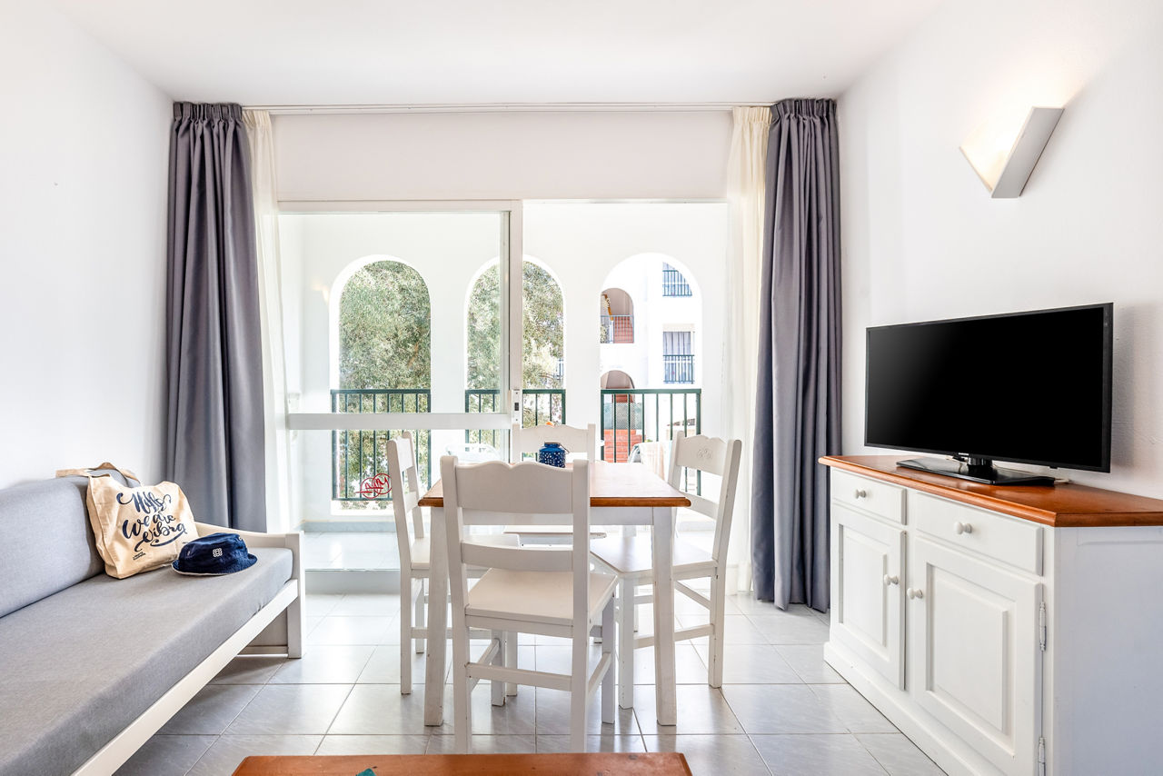 Vibra Caleta Playa boasts a fantastic location in Santandria close to a beautiful sandy beach and is host to a variety of facilities across the three hotels forming the international resort, which are the Blanc Cottage, Blanc Palace and Caleta Playa. Days can be spent relaxing by one of the large inviting pools or, for a change of scenery, the historical town of Ciutadella is only a short bus or taxi ride away. With a wide range of facilities and board options, including the flexibility of Self Catering, couples families and friends are sure to have an unforgettable holiday at Vibra Caleta Playa!One Bedroom apartments sleep up to 2 adults and 2 children and have bathroom containing a bath with shower attachment, air conditioning, hairdryer, television, double cooking rings, fridge-freezer, microwave and balcony or terrace. Room upgrade options are also available.