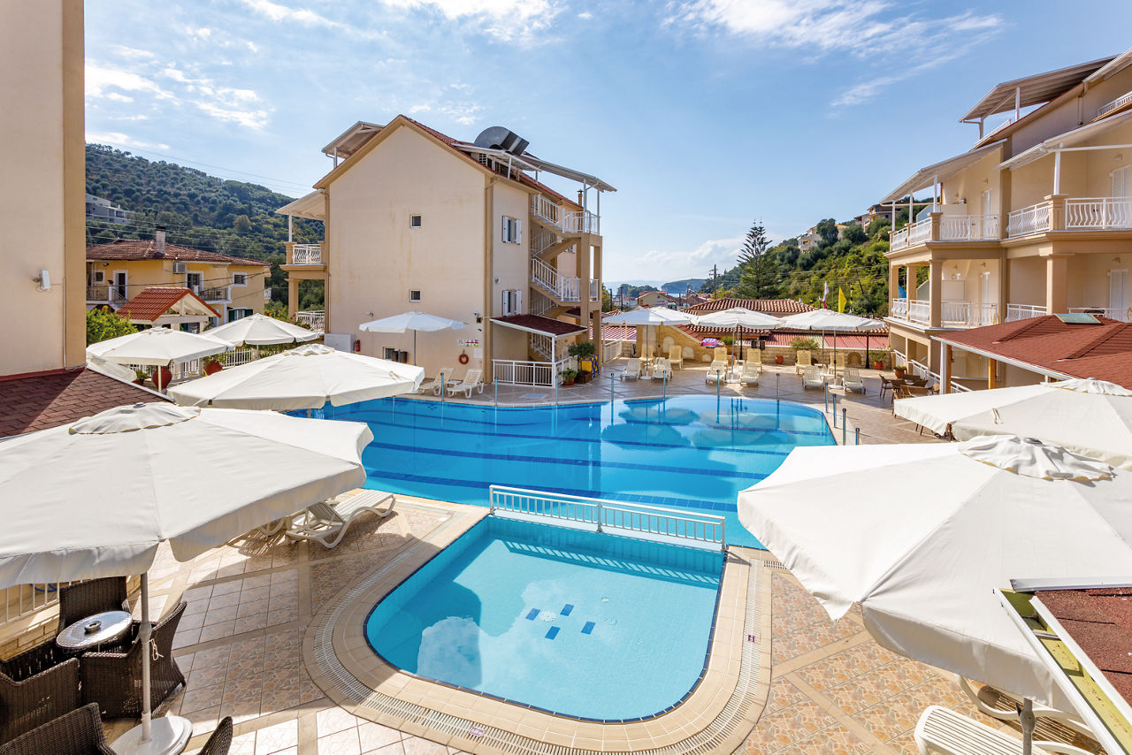 A traditional Greek hotel, Elena Apartments are set in a rural location on the outskirts of Parga Town. There's a lovely, spacious pool area which comes a large terrace filled with sunbeds for lazing the day away, and a pool bar serving refreshing drinks and snacks. There's also a small playground for keeping the little ones entertained. Apartments are bright and classic in style, with small kitchenettes and the Parga Town, with its seafront tavernas and cafes aplenty, is around a 15-minute walk away, making this perfect for a self-catering getaway.One Bedroom Attic apartments sleep up to 2 adults and 1 child and have bathroom, air conditioning*, television, fridge, tea and coffee making facilities, double cooking rings and balcony or terrace. One Bedroom apartments sleeping up to 3 adults and 1 child and Ground Floor One Bedroom apartments sleeping up to 4 adults are also available.