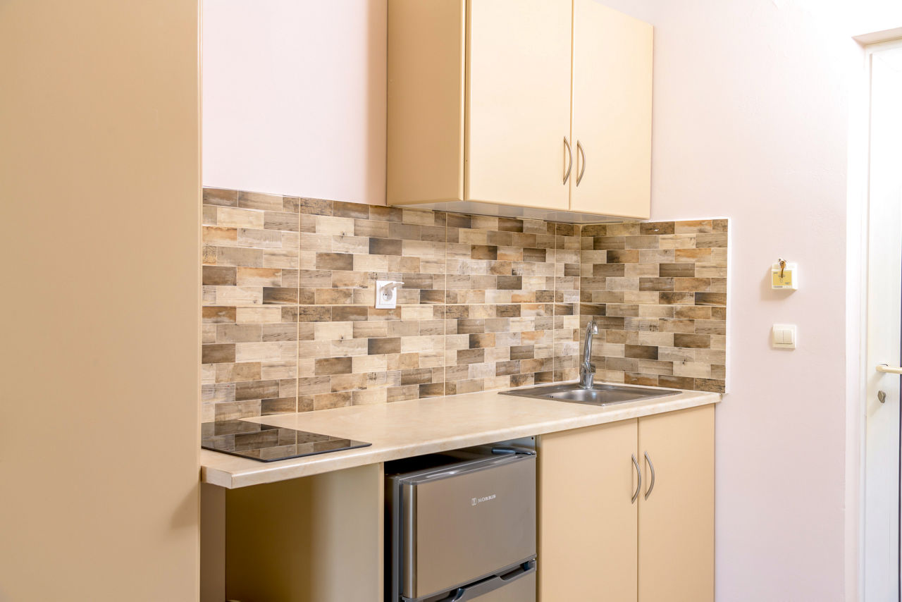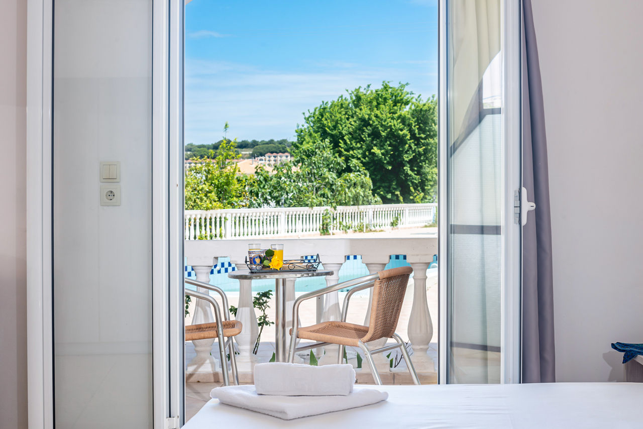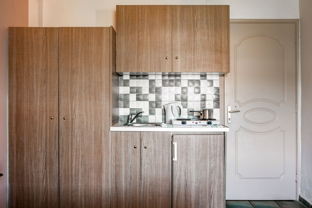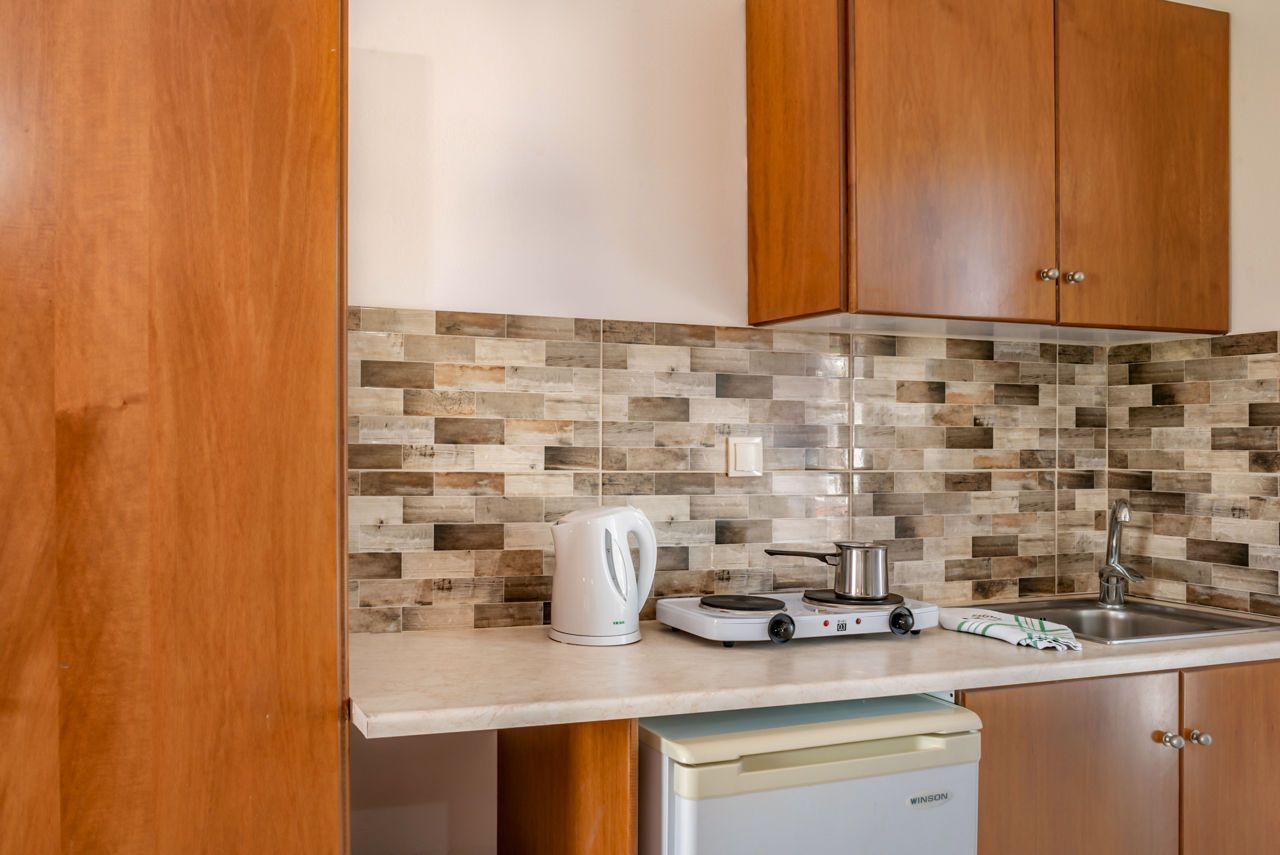 Studios sleep up to 3 adults and have bathroom containing a shower, air conditioning, hairdryer, flat screen television, fridge, kettle, coffee making facilities, double cooking rings and balcony or terrace. Room upgrade options are also available.