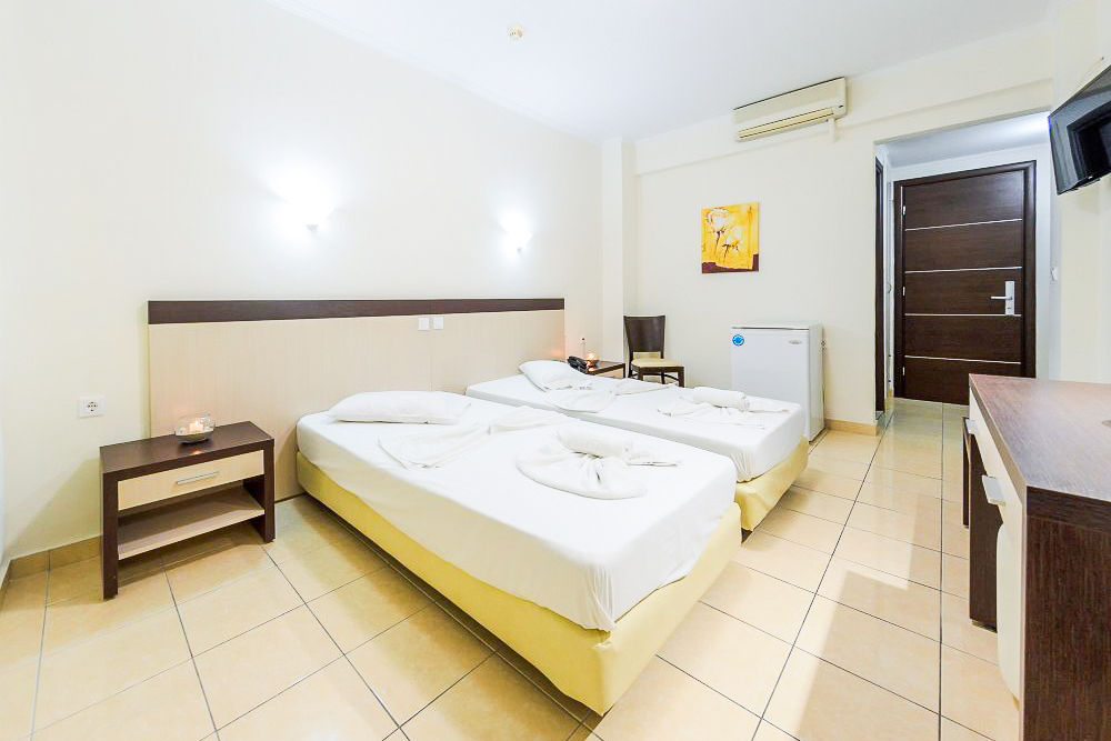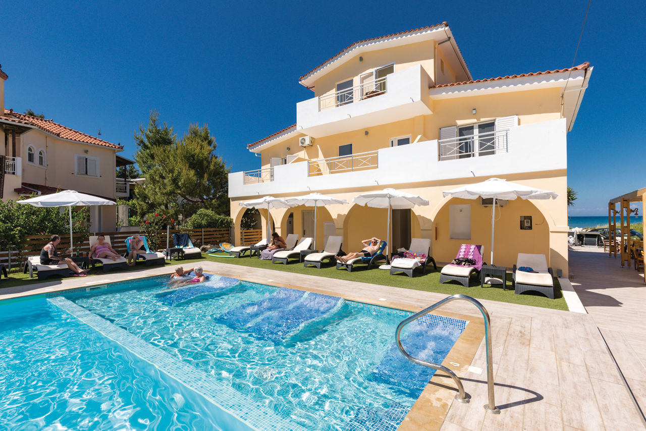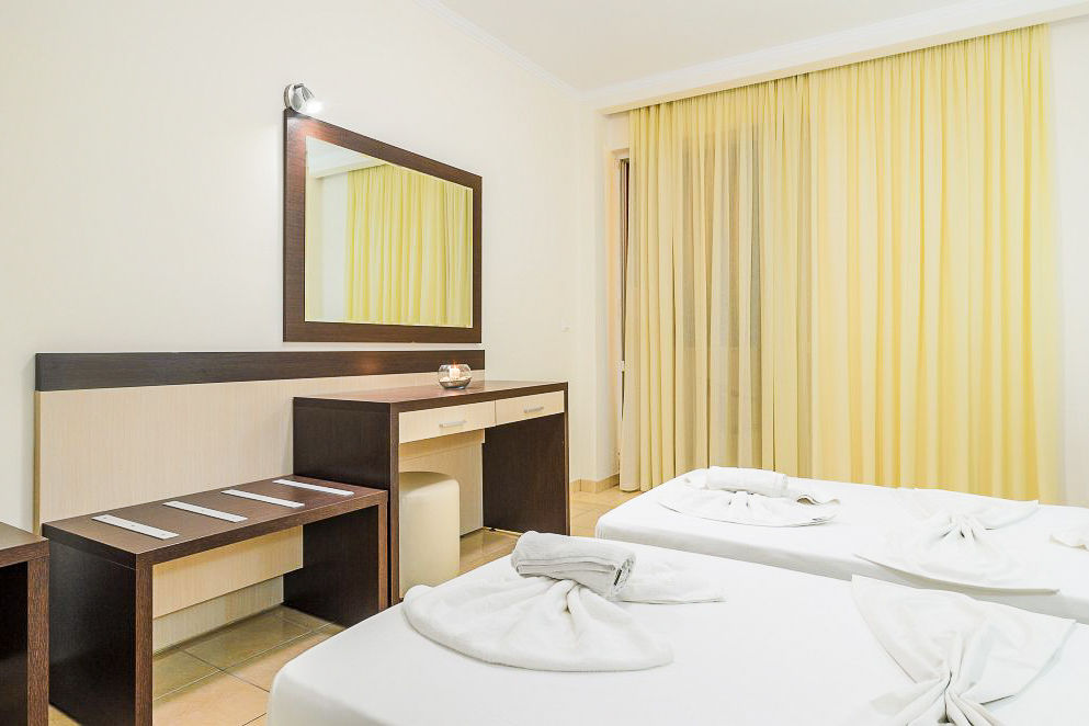 Suiting couples and beach-lovers, the Ionian Star offers bright and modern accommodation with a relaxed, homely feel. The spacious outdoor pool and ? la carte restaurant ensure this charming hotel blends together personal service with a laid-back approach. Days can be spent relaxing and soaking up the sun and with Alykes resort centre within close proximity, bars and restaurants are on your doorstep.Twin rooms sleep up to 3 aults and have bathroom with shower, TV, fridge, air conditioning* and balcony or terrace. Twin rooms for sole use are also available.
