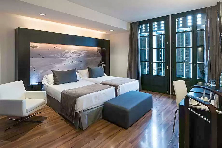 Occupying a stylish, modernist building, the hotel is located in the heart of the Gothic Quarter of Barcelona, by the Cathedral, Pla?a Sant Jaume and a few metres from the famous Ramblas and Plaza Catalunya. Shopping venues, transport links and the best nightspots are a few minutes' walk away. Offering comfortable rooms and excellent service the Catalonia Catedral is a great base for a city break in Barcelona.Double rooms sleep 2 people and have en-suite bathroom with bath or shower, air conditioning, direct dial telephone, flat screen LCD with satellite or cable TV, hairdryer, iron, minibar and safe.