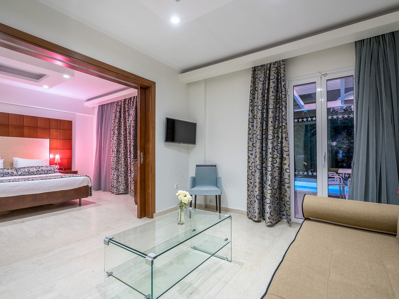 Standard rooms sleep up to 4 adults and have bathroom containing a bath, air conditioning*, hairdryer, flat screen television, fridge, tea and coffee making facilities and balcony or terrace. Room upgrade options are also available.
