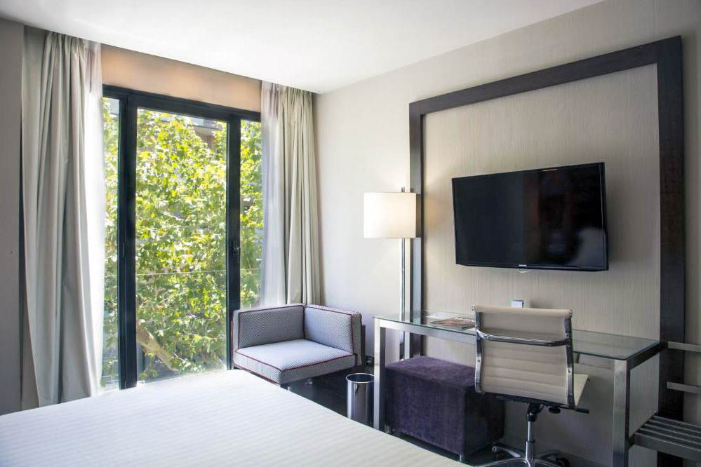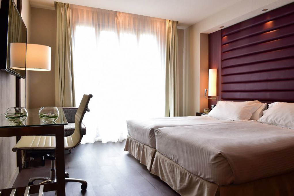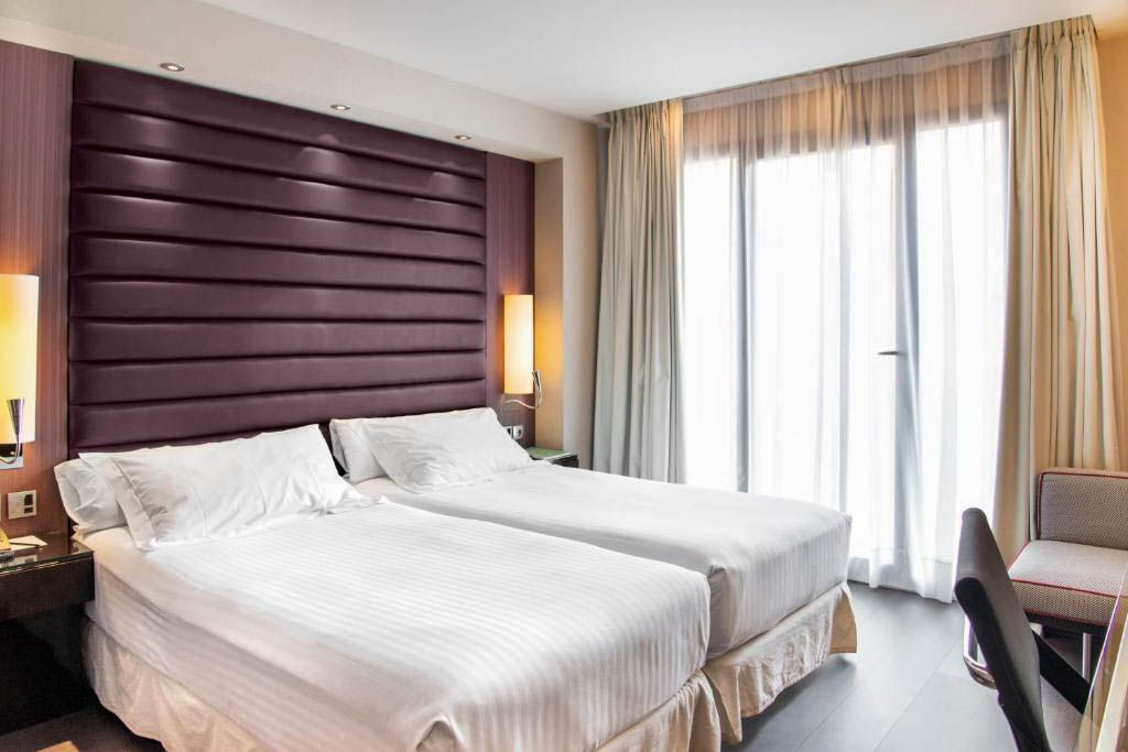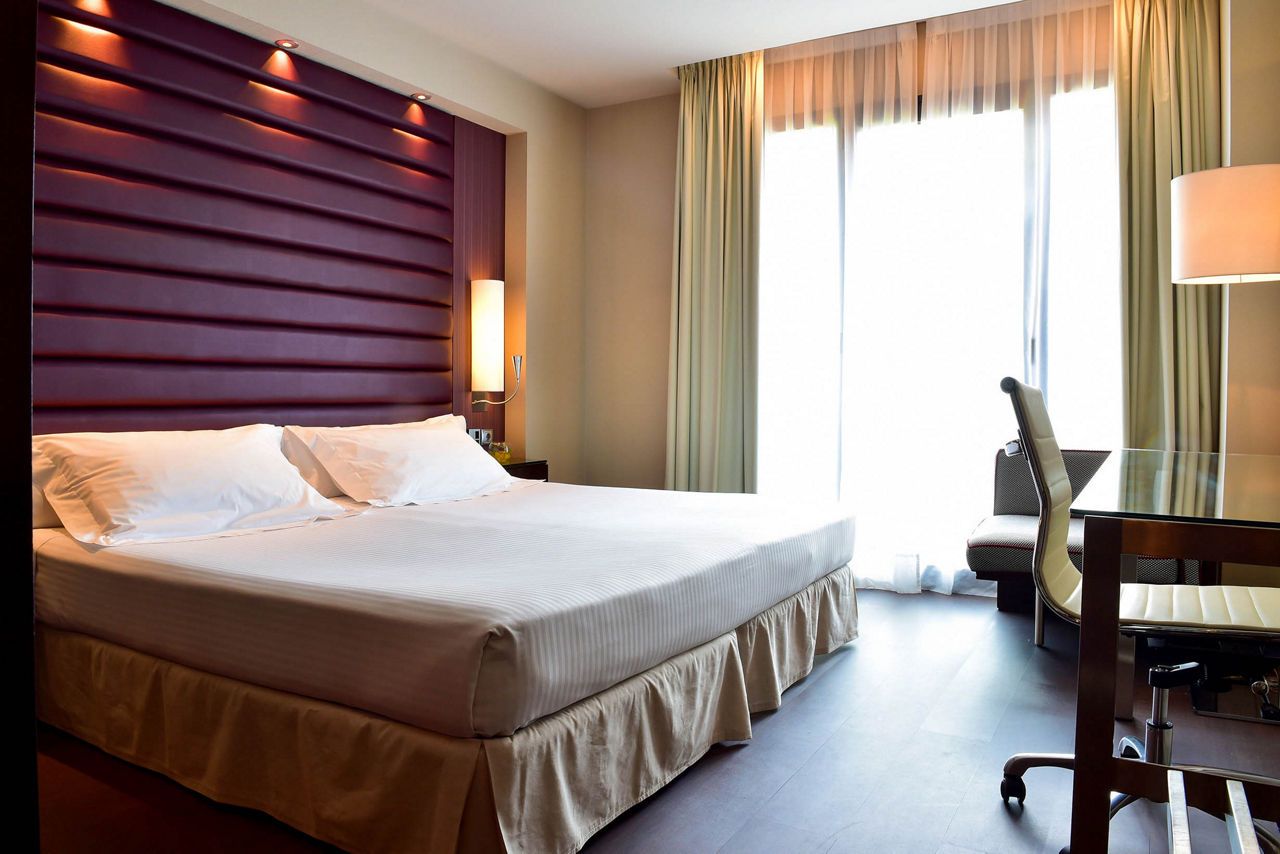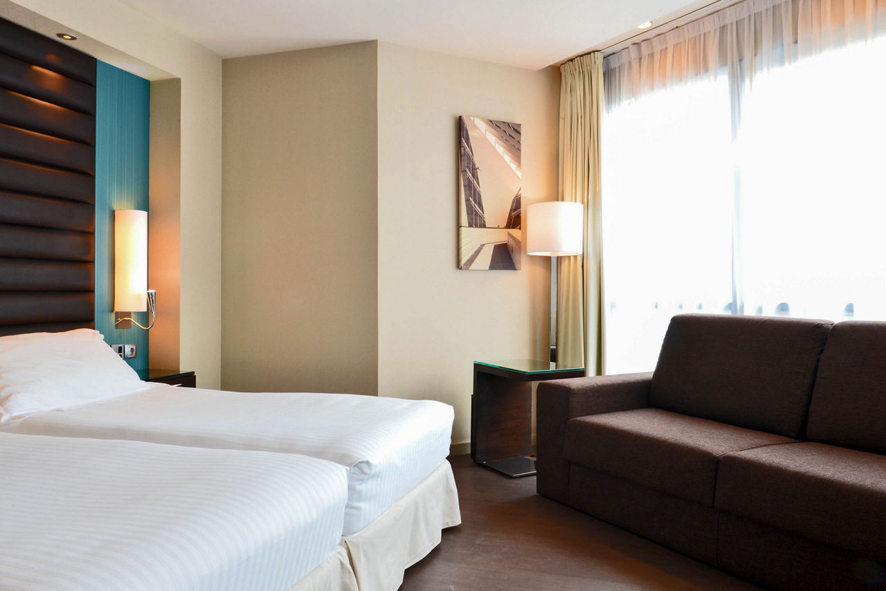 Located in the Sants district, the Pestana Arena Barcelona is a stylish 4* hotel, just a short walk from Placa d?Espanya and close to public transport links, making it easy to explore the city, allowing guests to explore famous attractions such as La Sagrada Familia, Las Ramblas, and Passeig de Gr?cia. This modern hotel offers comfortable and well-equipped rooms, designed to provide a relaxing stay and a peaceful night?s sleep. With facilities such as a sauna, gym and Lobby-Bar, the hotel offers a welcoming and convenient stay in one of Barcelona?s most vibrant districts.Double rooms sleep up to 2 adults and have bathroom containing a shower, air conditioning, hairdryer, flat screen television and safety deposit box. Room upgrade option and Sole Use rooms are also available.