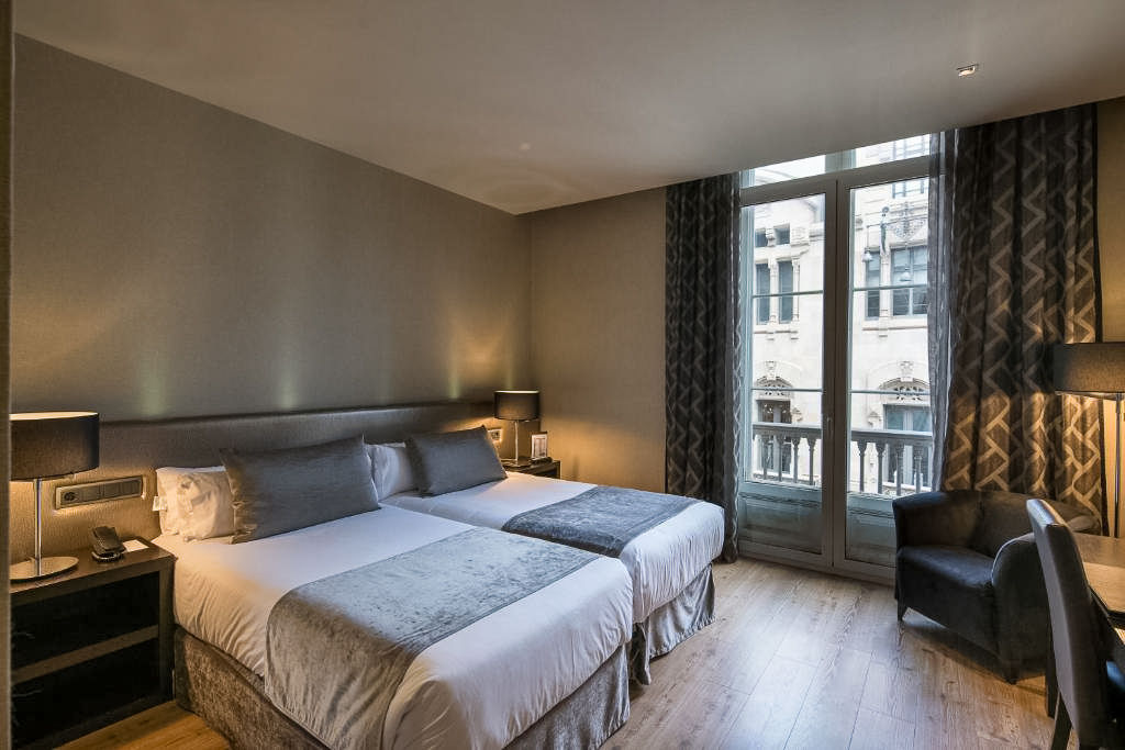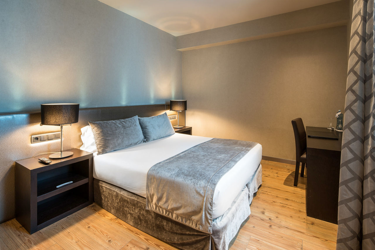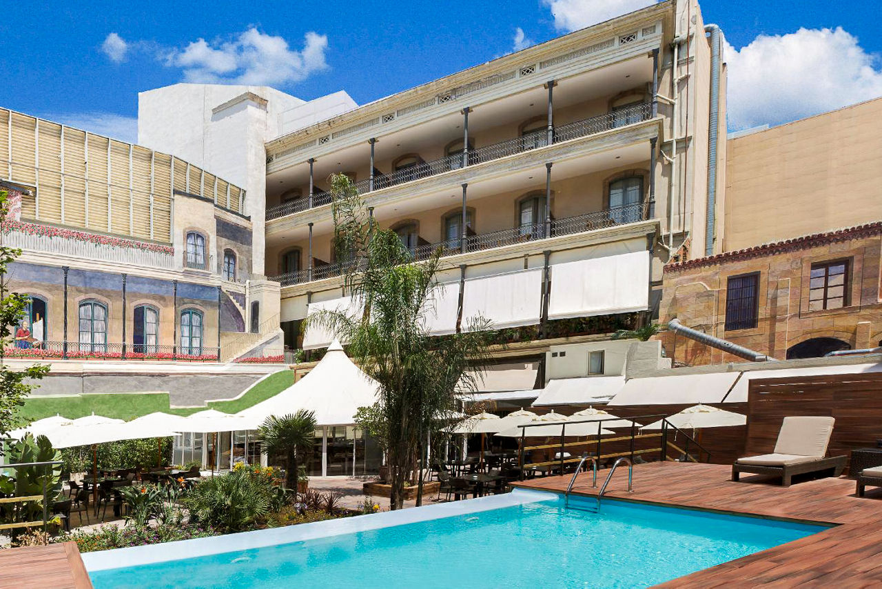 The Catalonia Portal De L'Angel Hotel is in a prime location, just steps away from main attractions such as Plaza Catalunya and the Cathedral, as well as being close to the Barceloneta beach. Set in a historic old-style palace, this relaxed hotel can offer you spacious and modern rooms, as well as a Gastrobar, and breakfast made from local products inside a heated pergola. Housing a large garden patio with a pool and sun deck, surrounded by beautiful wall paintings, experience something quirky.Standard Double or Twin rooms sleep up to 2 adults and have bathroom containing a bath or shower, air conditioning, hairdryer, coffee making facilities, mini bar*, safety deposit box and flat screen television. Room upgrade options and Sole Use rooms are also available.