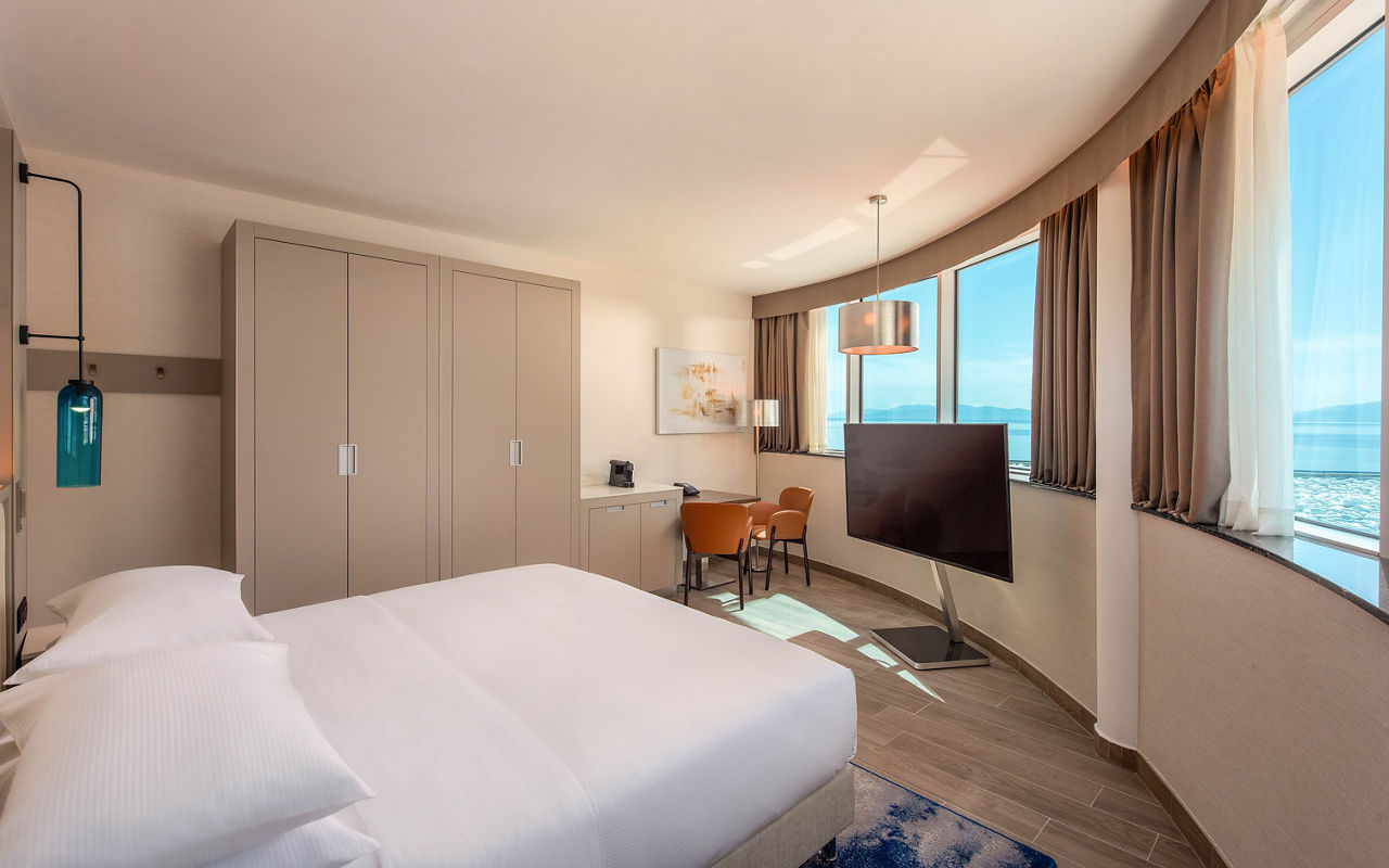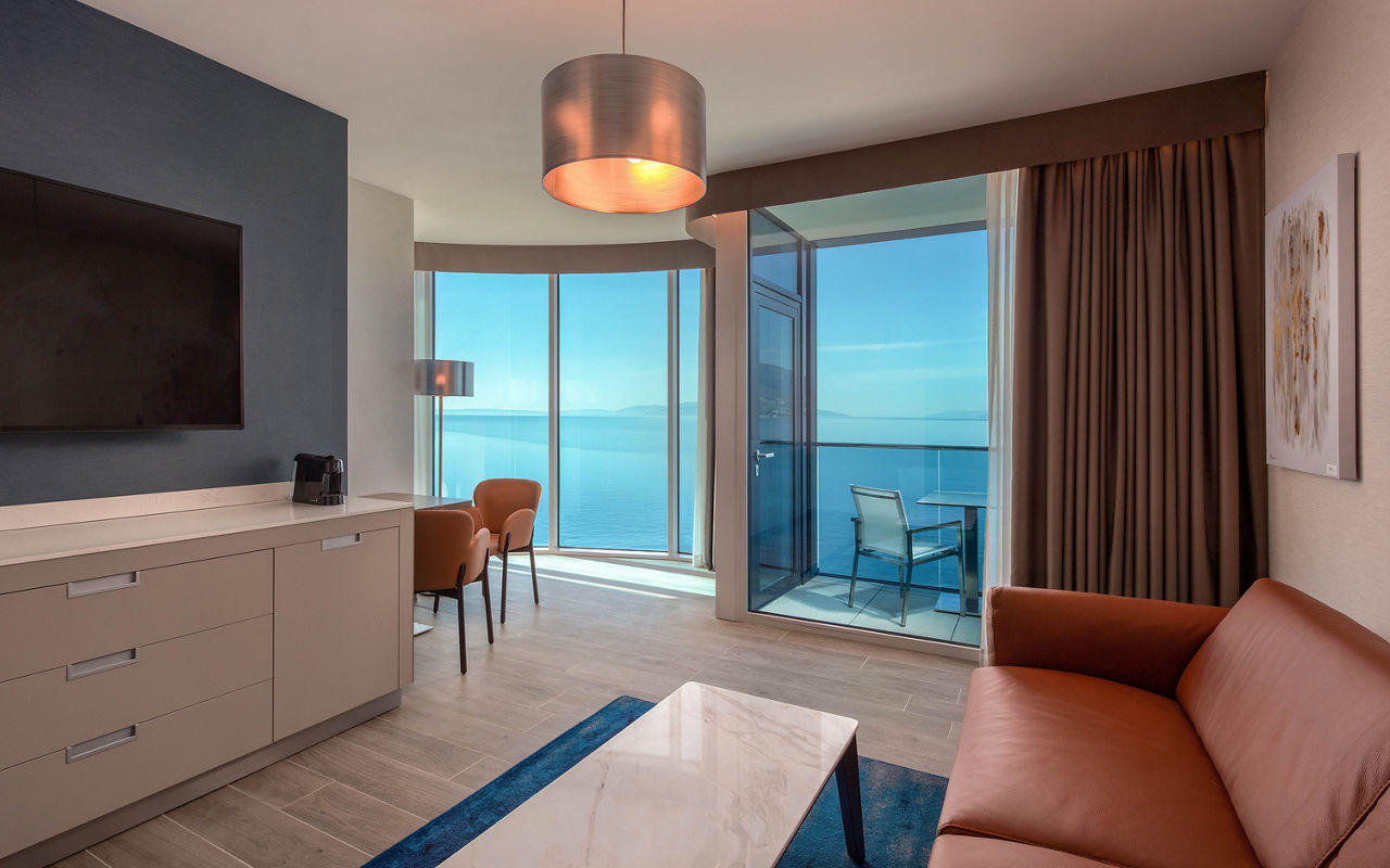Hilton Rijeka Costabella Beach Resort & Spa is a stylish seafront retreat between Rijeka and Opatija, where every room and suite offers beautiful views of the Adriatic. The resort combines modern accommodation with a spa, two pools, and its own private pebble beach. Guests can enjoy a wide variety of dining options, from a rooftop restaurant to casual beachside venues. It?s an ideal choice for relaxation or exploring the stunning Kvarner Bay.Costabella suite with Balcony and Sea View sleep up to 2 adults and have bathroom containing a bath or shower, air conditioning, bathrobes and slippers, safety deposit box, flat screen television and balcony. Room upgrade options are also available.
