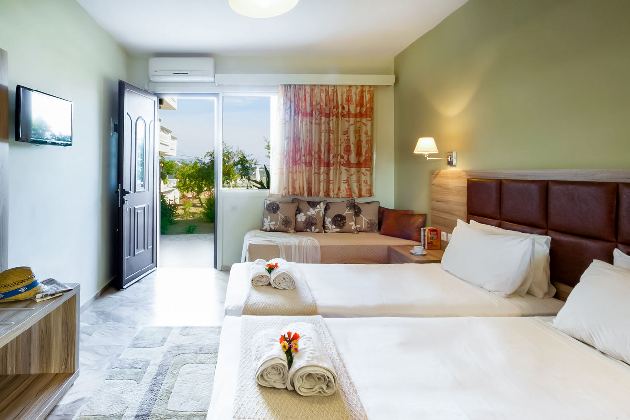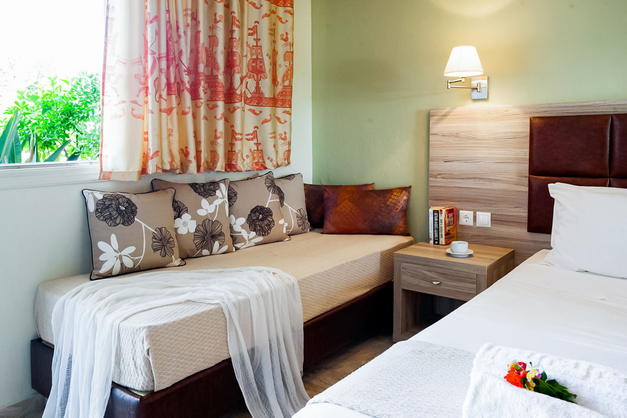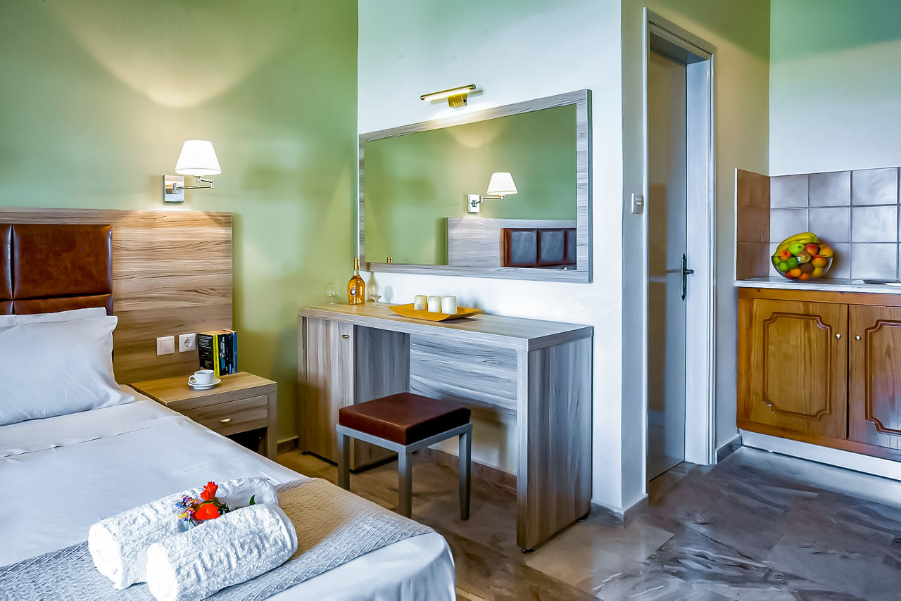 Tucked into the hillside in Megali Ammos, Blue Horizon Studios is a small, family-run property offering a warm and welcoming base. With both self-catering and bed and breakfast options, it's ideal for couples or families looking to explore at their own pace. The beach and resort centre are within easy reach, and vibrant Skiathos Town is just 1km away - perfect for a stroll into charming streets and waterfront tavernas.Studios sleeps up to 3 adults and have bathroom containing shower only, air conditioning, television and kitchenette.