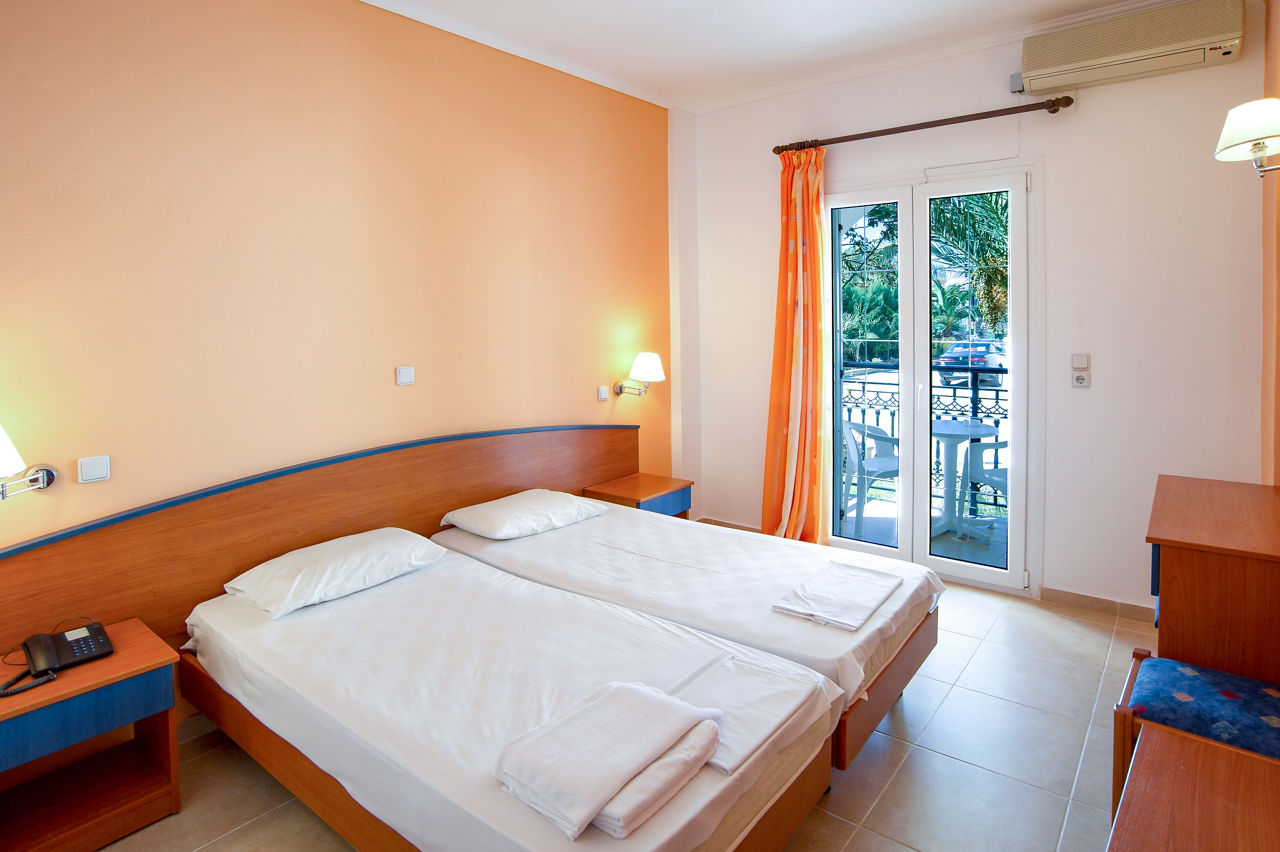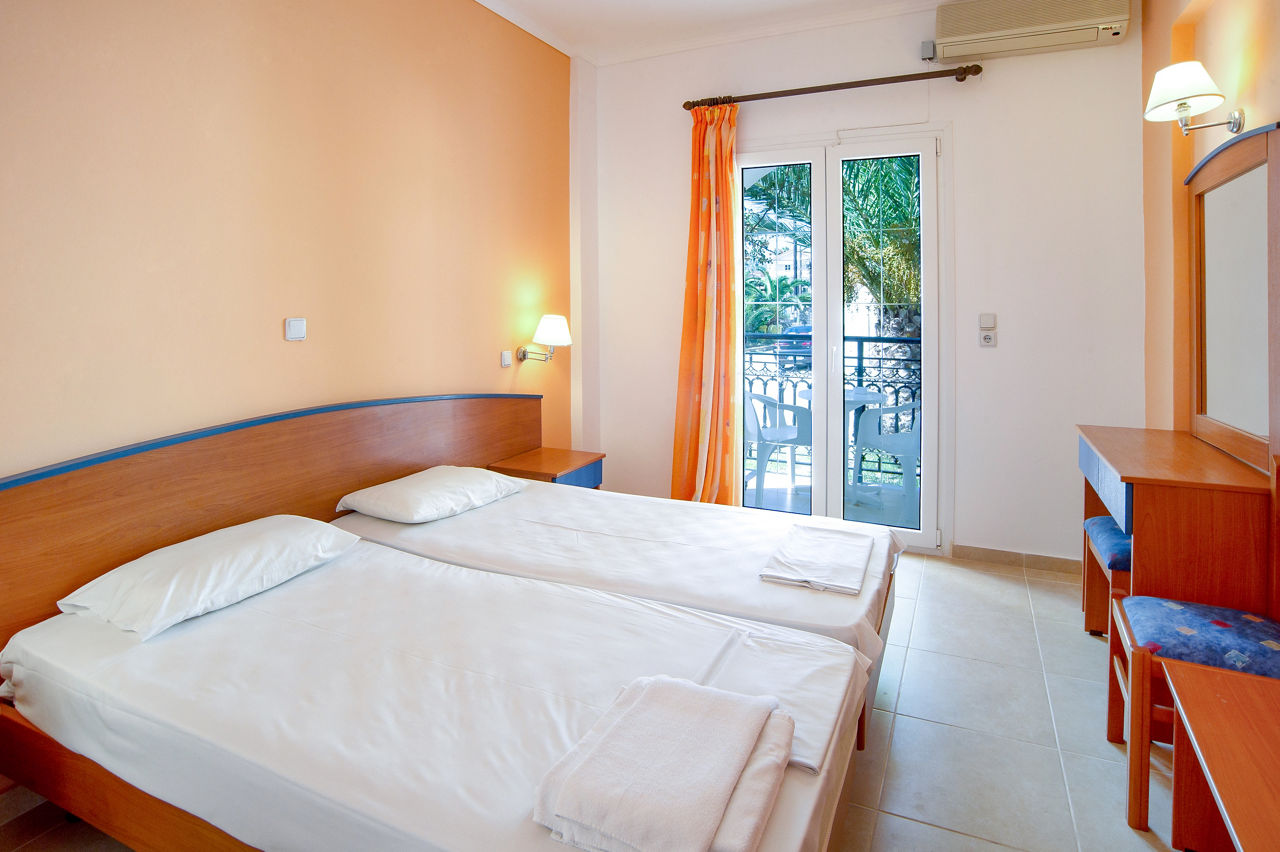Metaxa Hotel is a family-run property boasting a great location in the heart of Kalamaki and just a few minutes walk from the beach. On-site there is a relaxing pool area with a pool bar for you to take advantage of. With friendly service and good-sized rooms, it?s understandable why people return to this property year after year.Twin room sleeps up to 3 adults or 2 adults and 1 child with bathroom containing shower, air conditioning*, television and balcony or terrace.