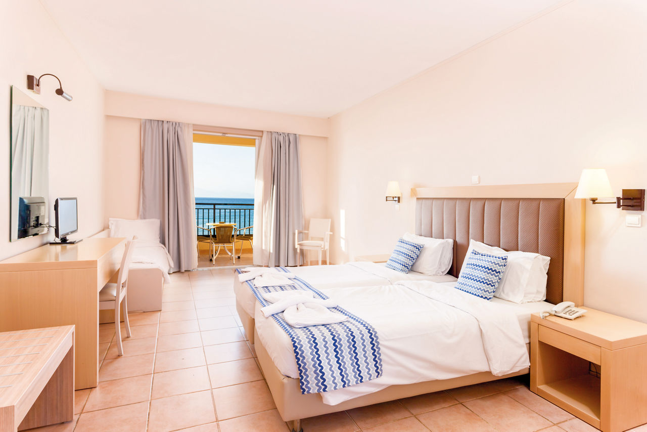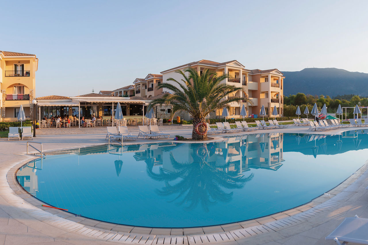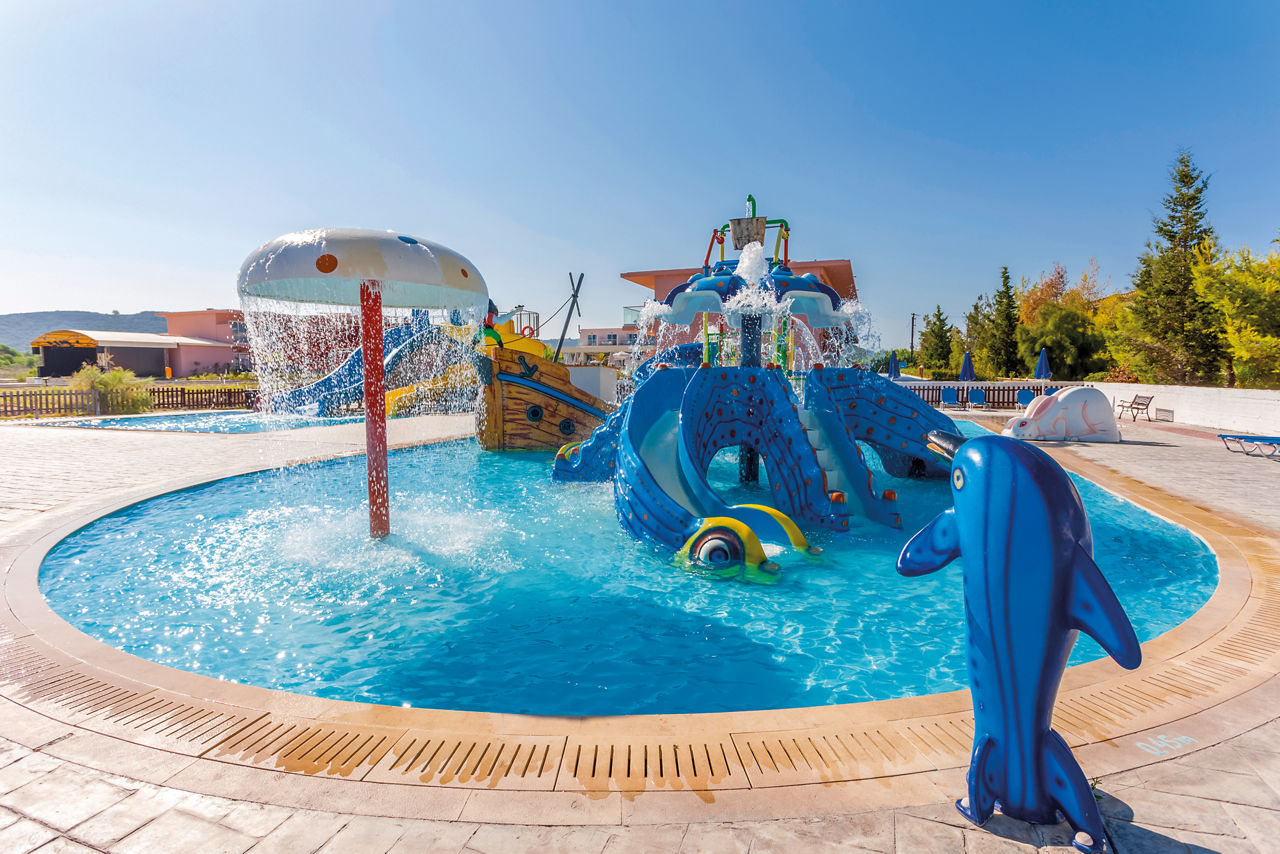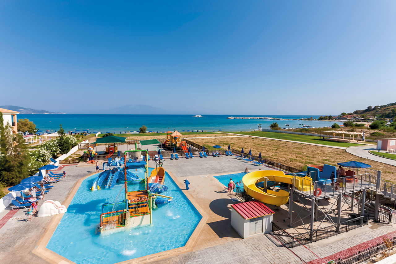 Set in a fantastic location on the beachfront, Alykanas Village is a modern and contemporary hotel with beautifully decorated rooms in blue and neutral tones. On site, you'll find a thrilling pool with slides and a splash park which will keep the kids entertained for hours on end, not forgetting an additional pool for the adults overlooking a picturesque mountain backdrop. There?s plenty more on offer with a tasty buffet spread at meal times. Perfect for families, you?ll be spoilt for choice with the fantastic choice of amenities on offer for all ages.
