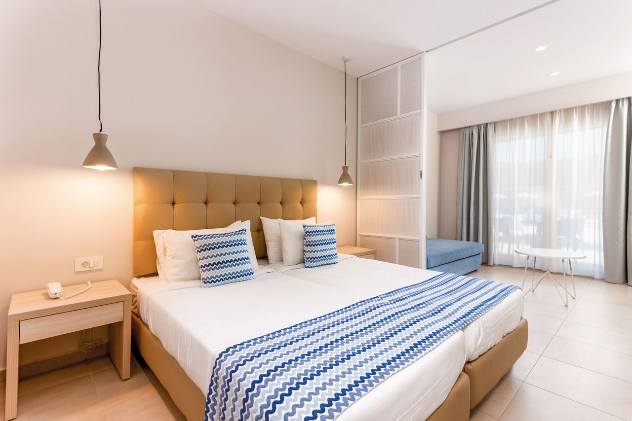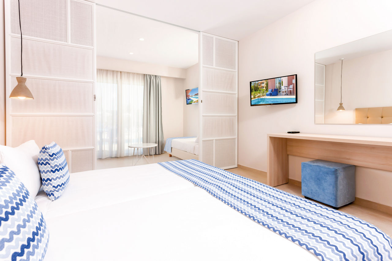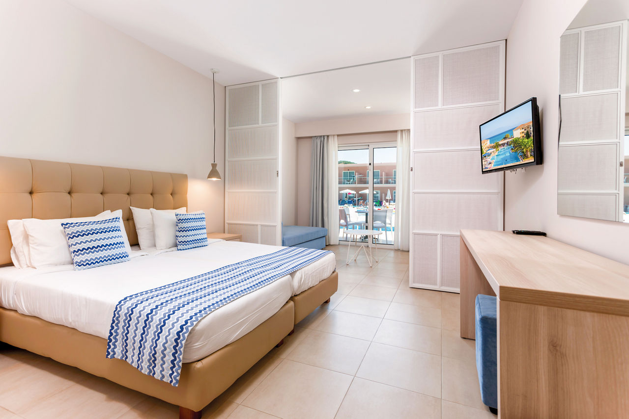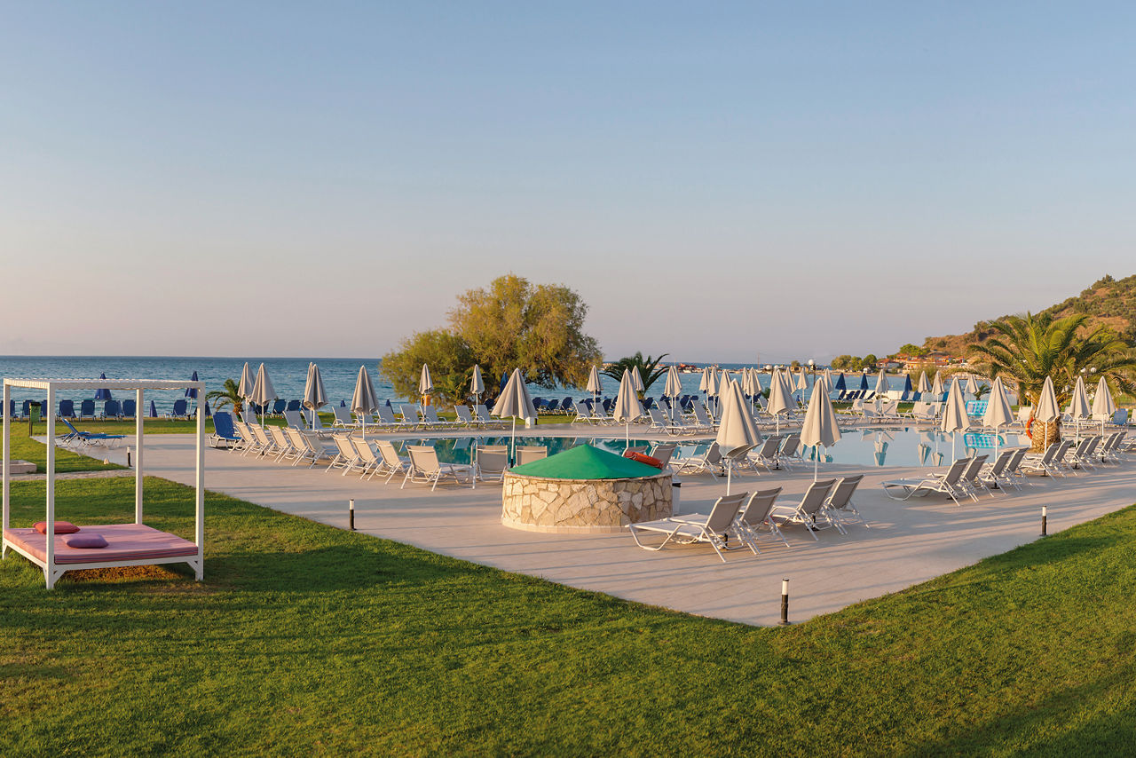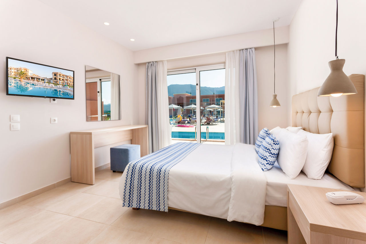 Set in a fantastic location on the beachfront, Alykanas Village is a modern and contemporary hotel with beautifully decorated rooms in blue and neutral tones. On site, you'll find a thrilling pool with slides and a splash park which will keep the kids entertained for hours on end, not forgetting an additional pool for the adults overlooking a picturesque mountain backdrop. There?s plenty more on offer with a tasty buffet spread at meal times. Perfect for families, you?ll be spoilt for choice with the fantastic choice of amenities on offer for all ages.