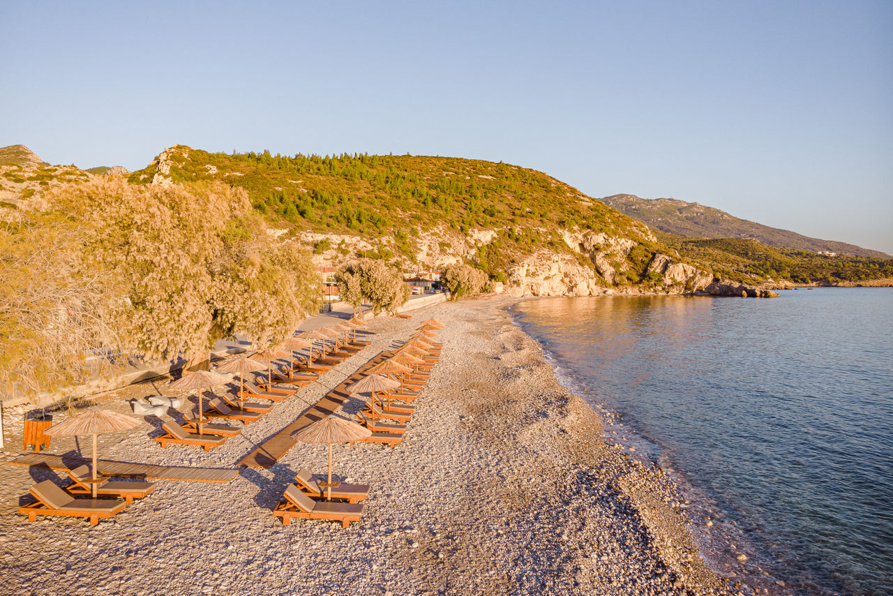The beachfront Princess Tia offers charming Greek hospitality and beautiful sea views. The natural surroundings create the perfect backdrop for beach walks and evening sunsets. There's an outdoor pool for relaxing and a bar for drinks. Rooms are well equipped for self catering, allowing for a truly relaxed holiday in Samos.